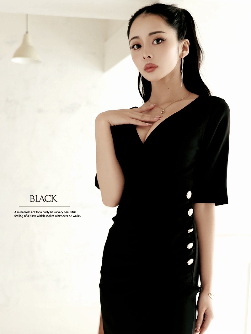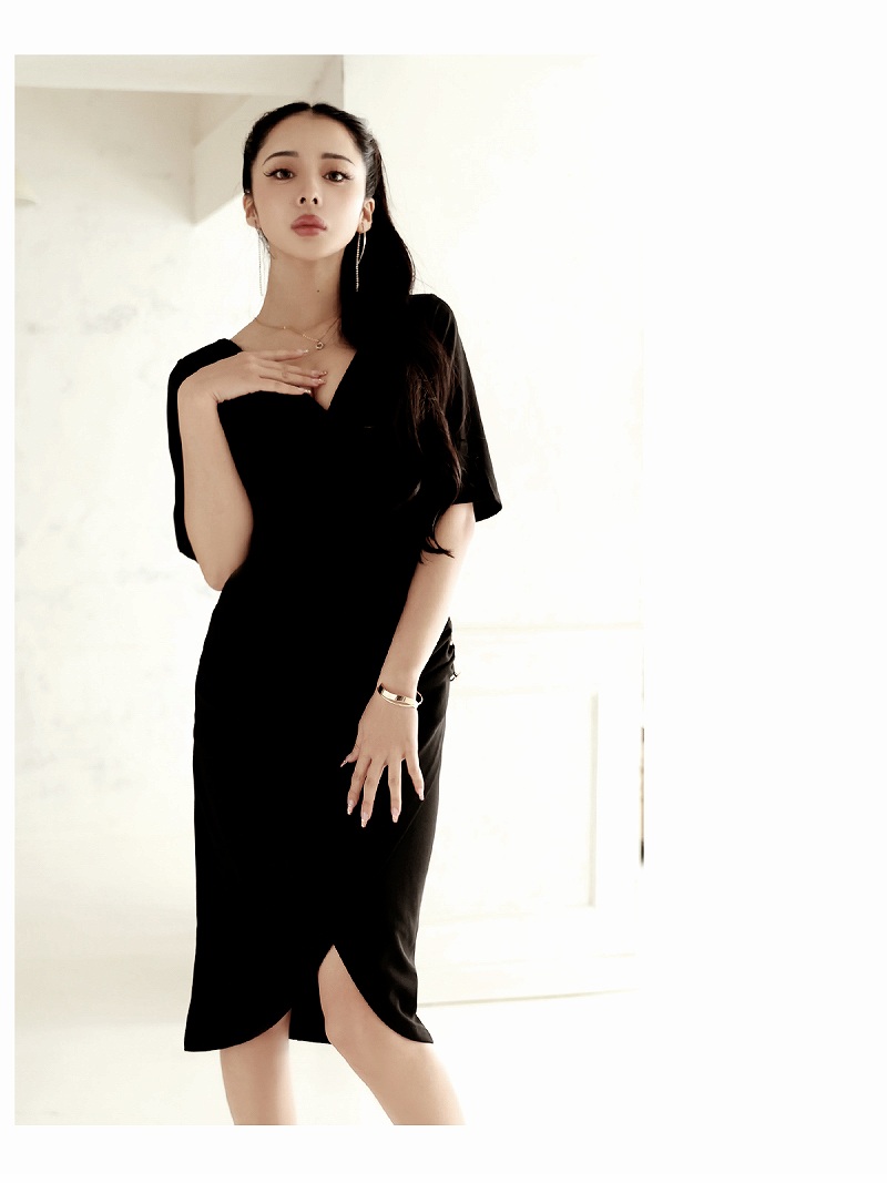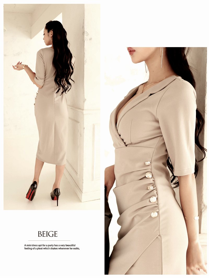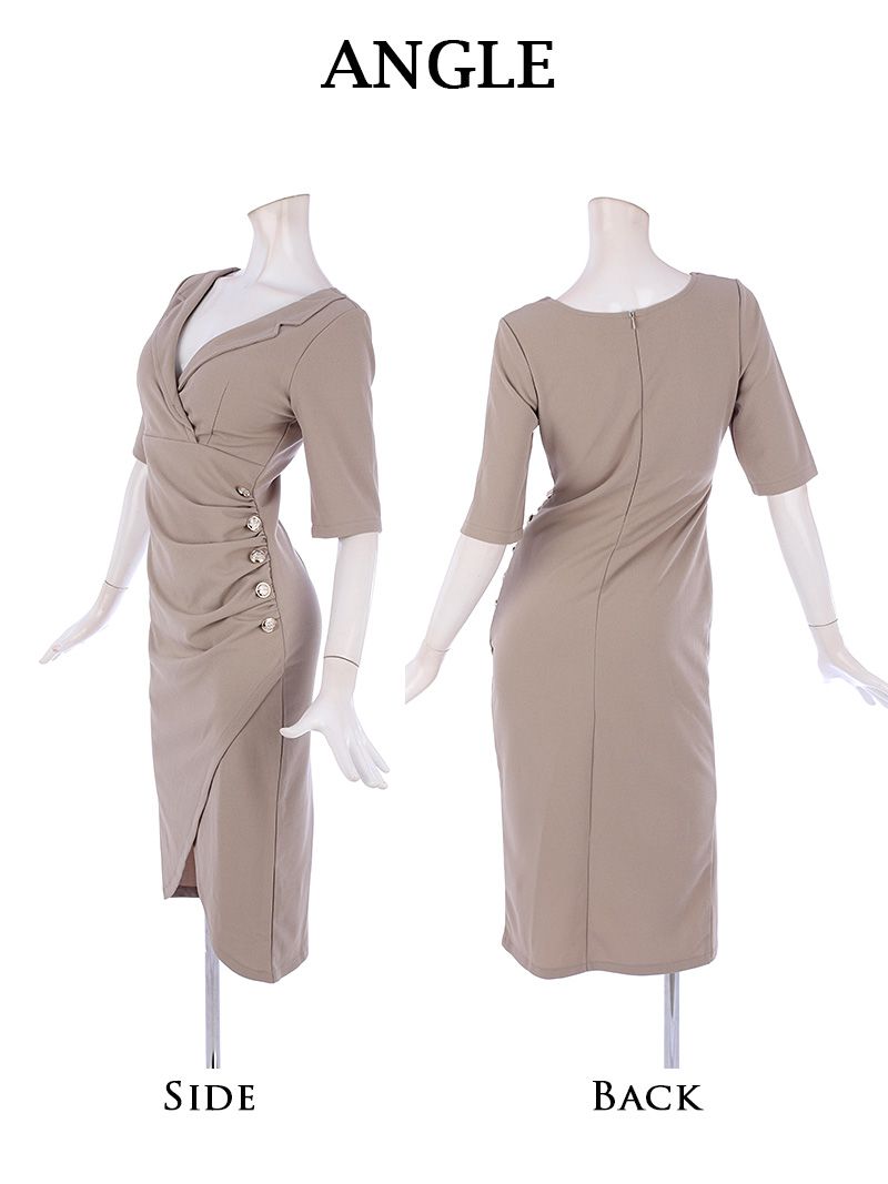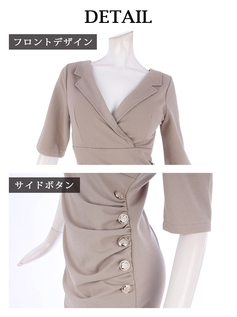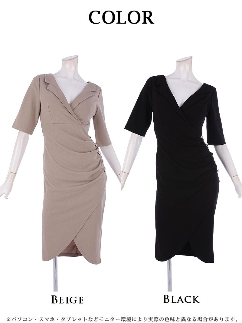 ワンピース キャバドレス セレブ カシュクール 膝丈 キャバドレス 大人 DaysPiece(S/M/L/XL(2L))(ブラック/ベージュ)