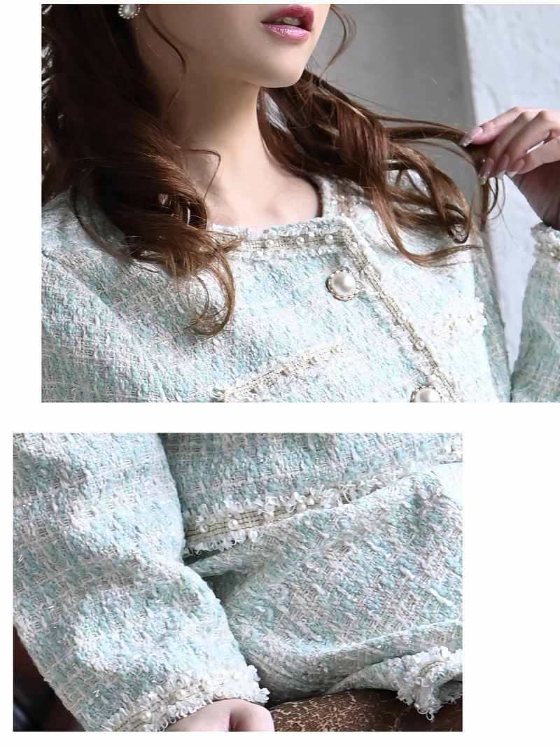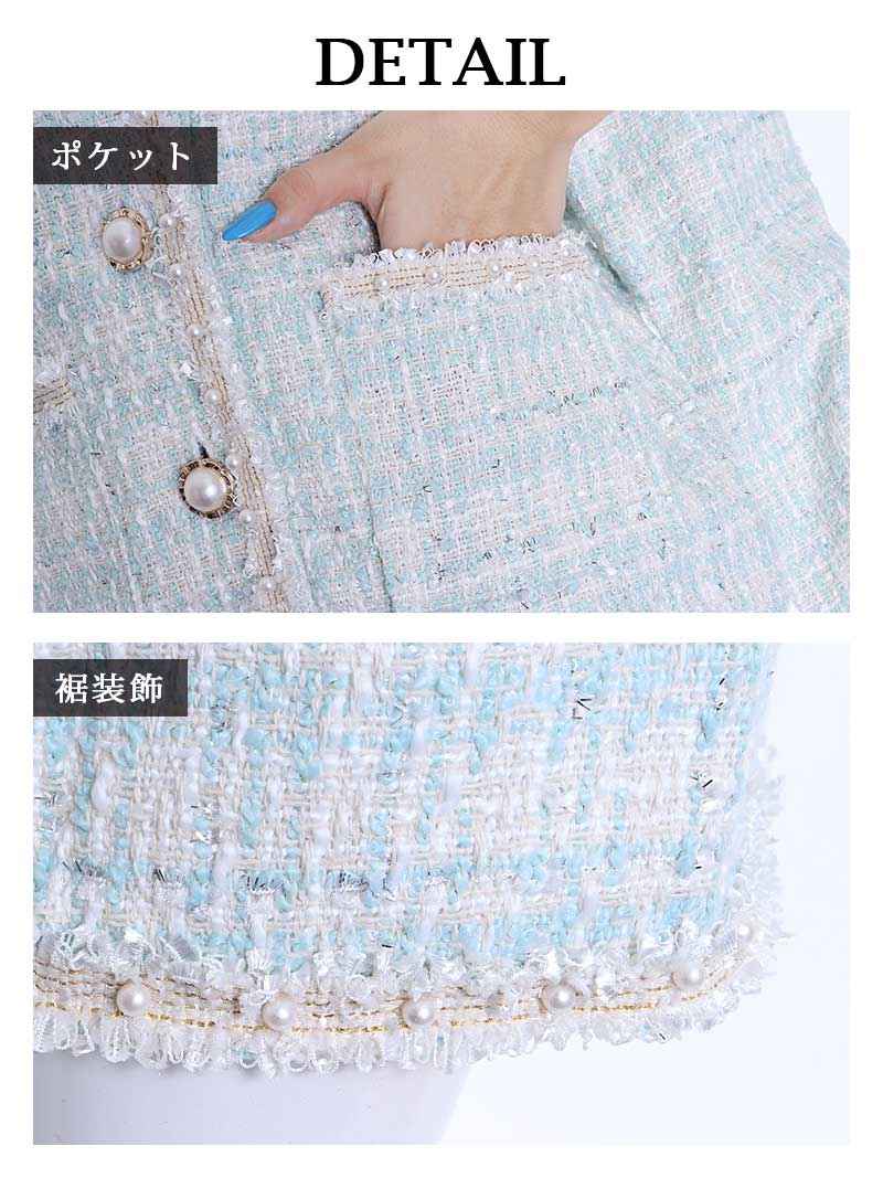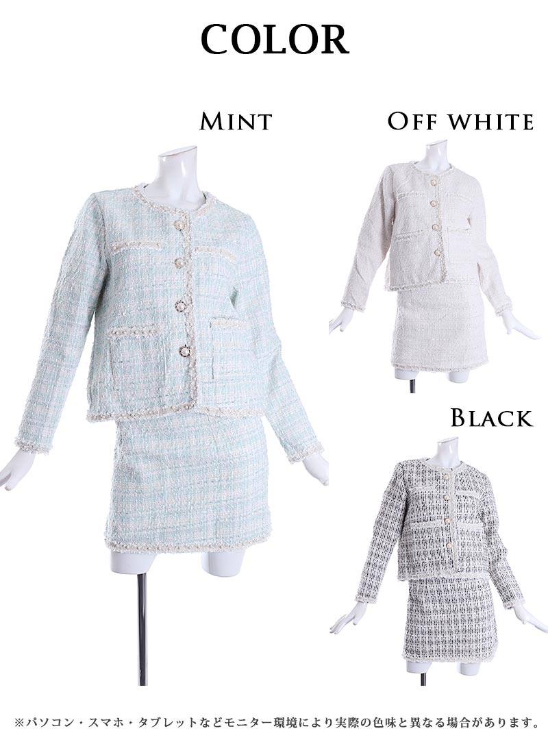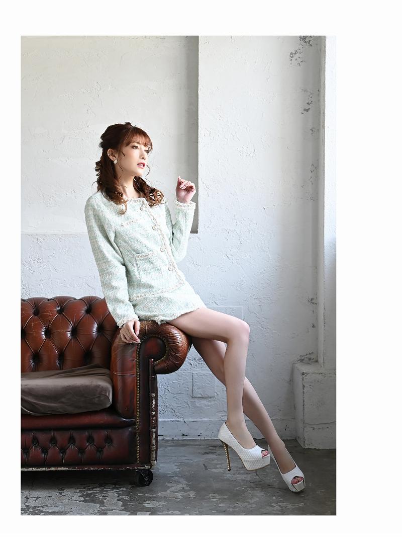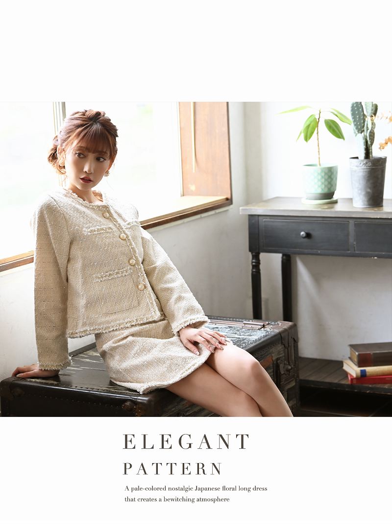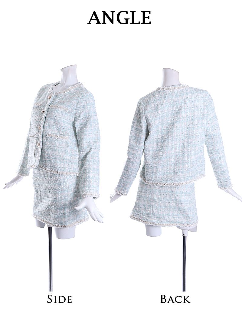 ☆上品なパステルカラーのツイードスカートキャバスーツ。