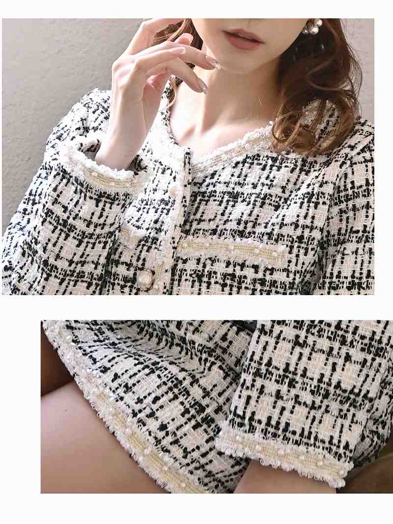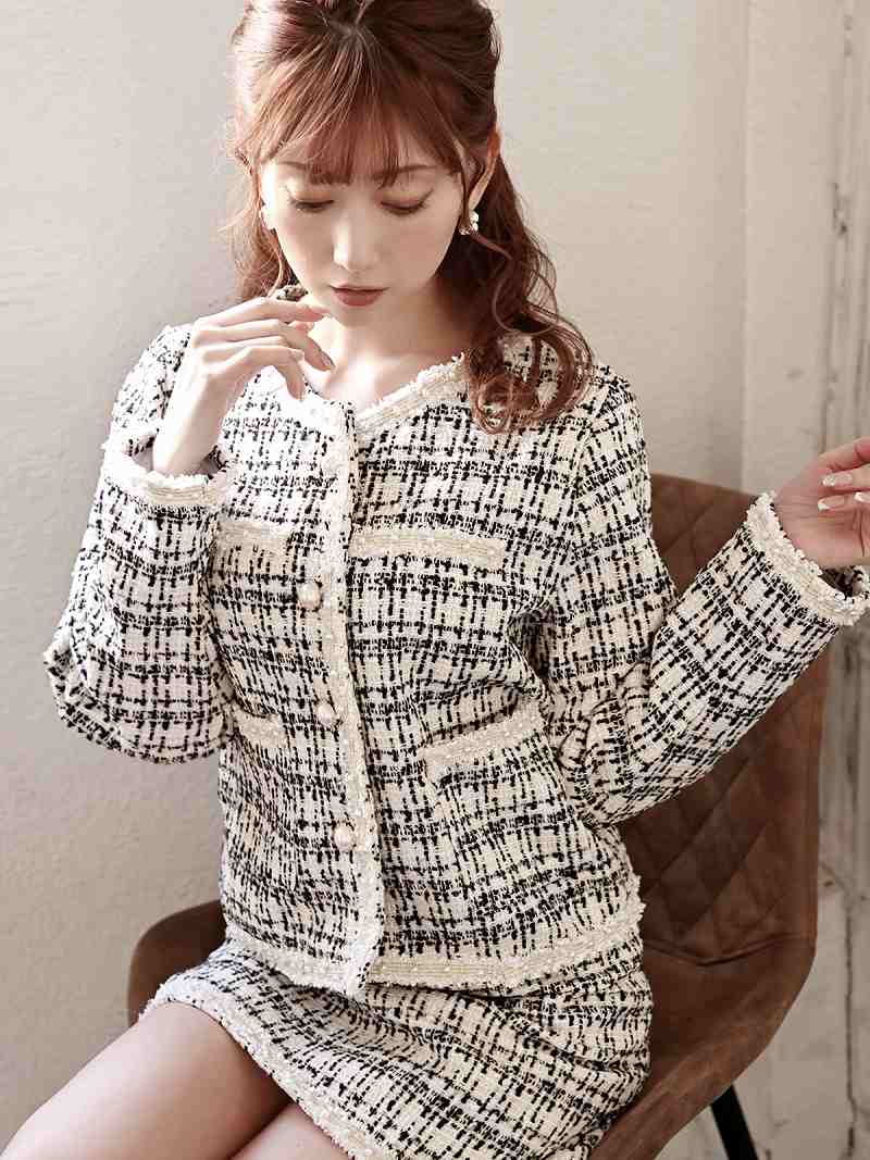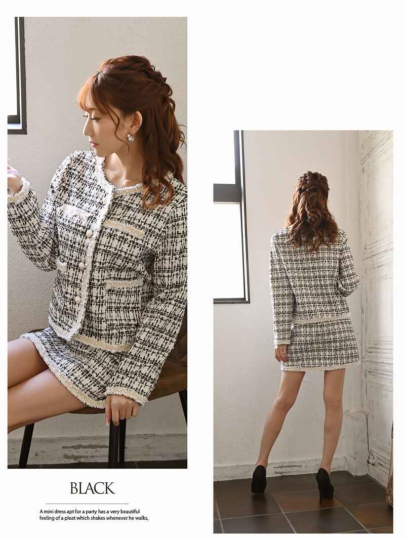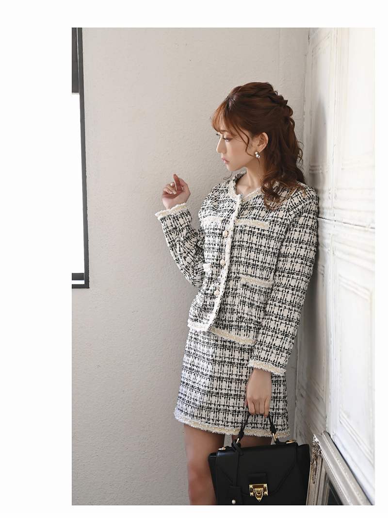 キャバスーツ コンパニオン フォーマル ノーカラー チェック ジャケット Belsia.LUX(S/M/L)(ブラック/オフホワイト/ミント)