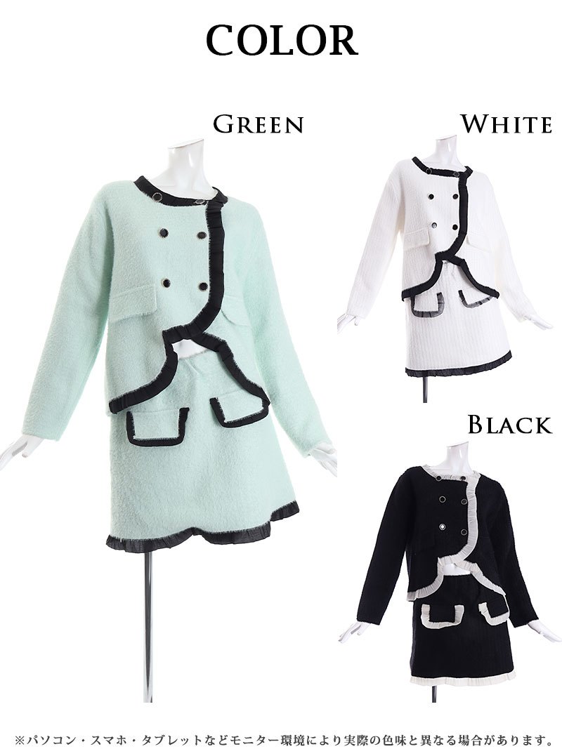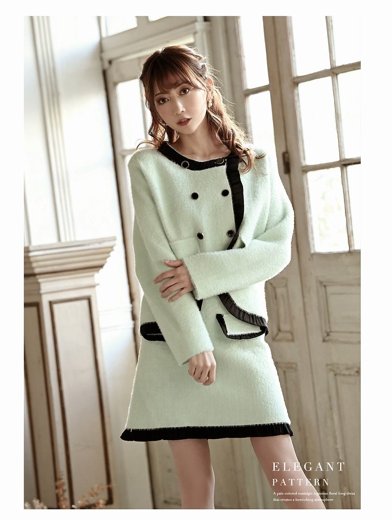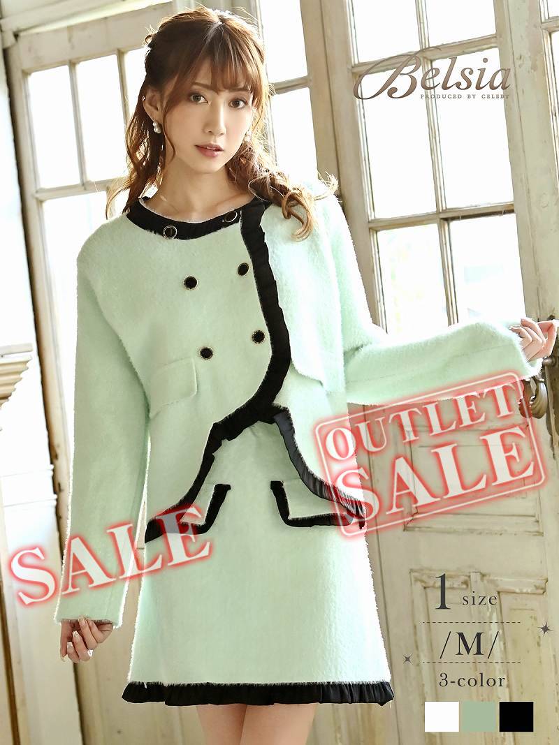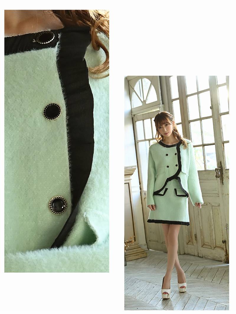 キャバスーツ ダブルジャケット ママスーツ アシンメトリー ナイトスーツ 可愛い Belsia(M)(ブラック/ホワイト/グリーン) [509854]