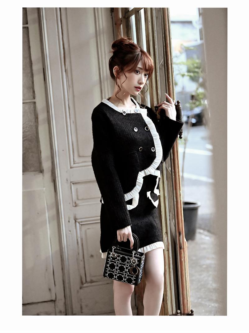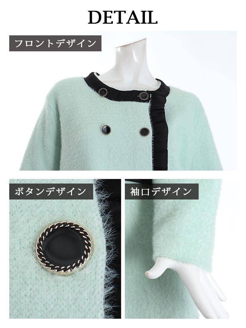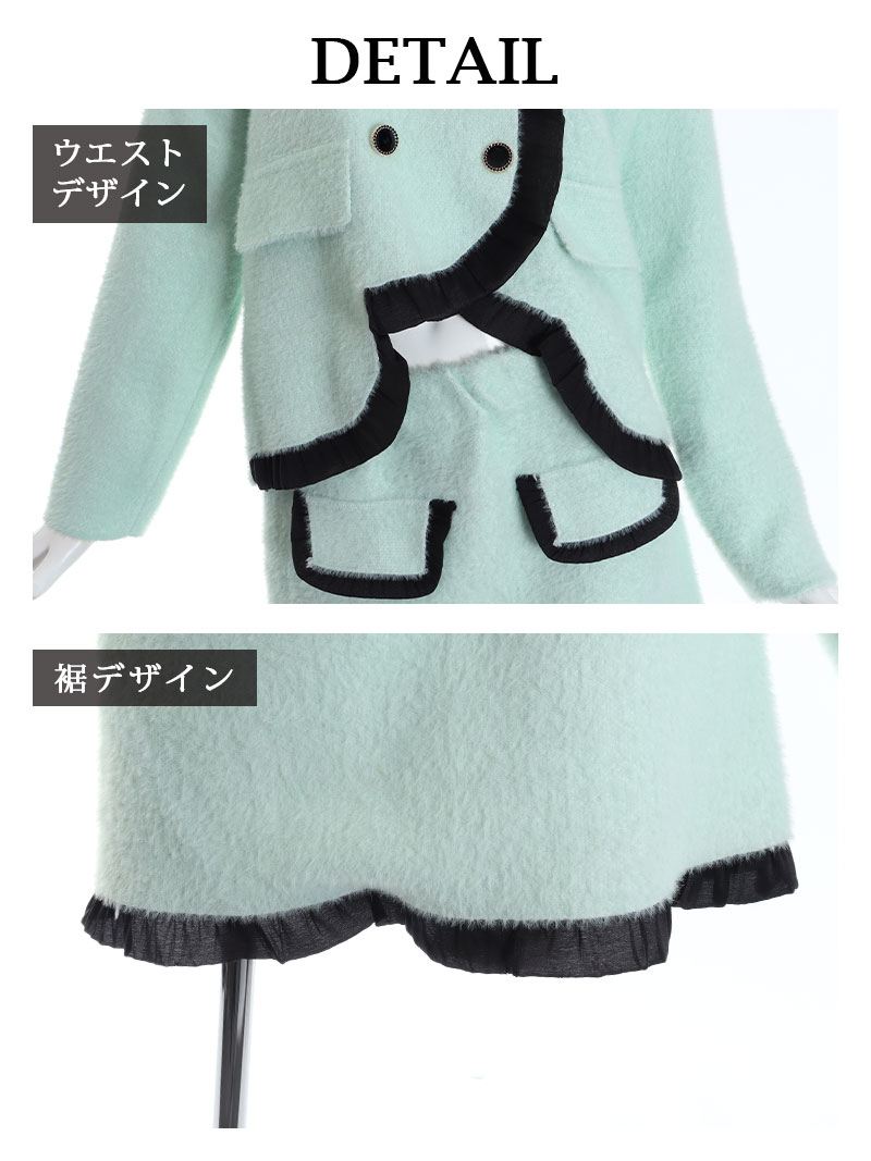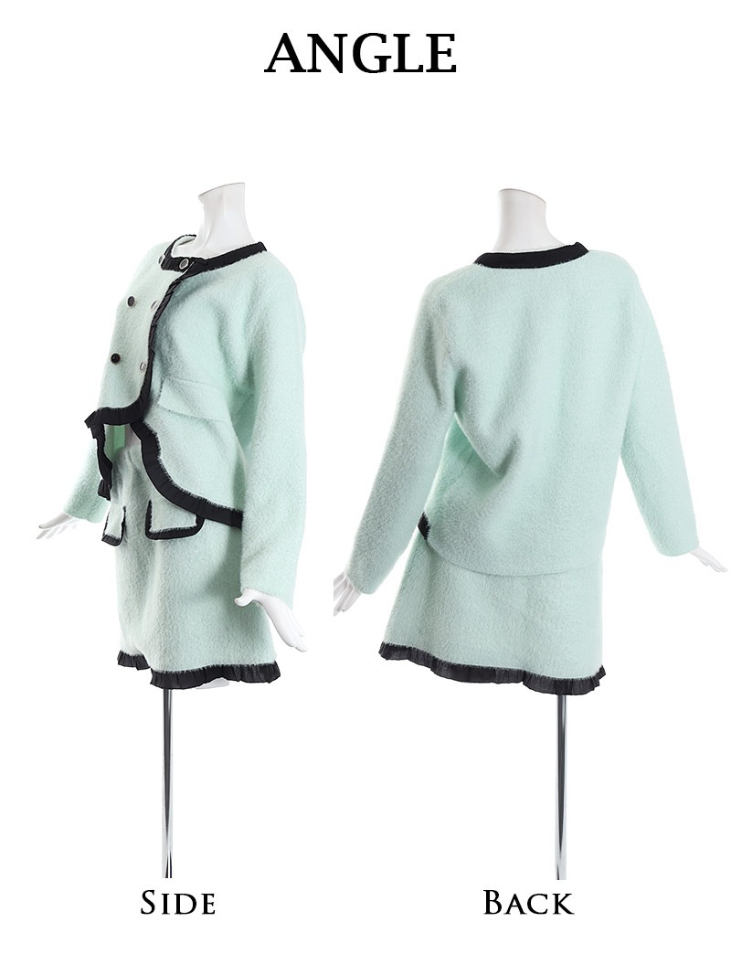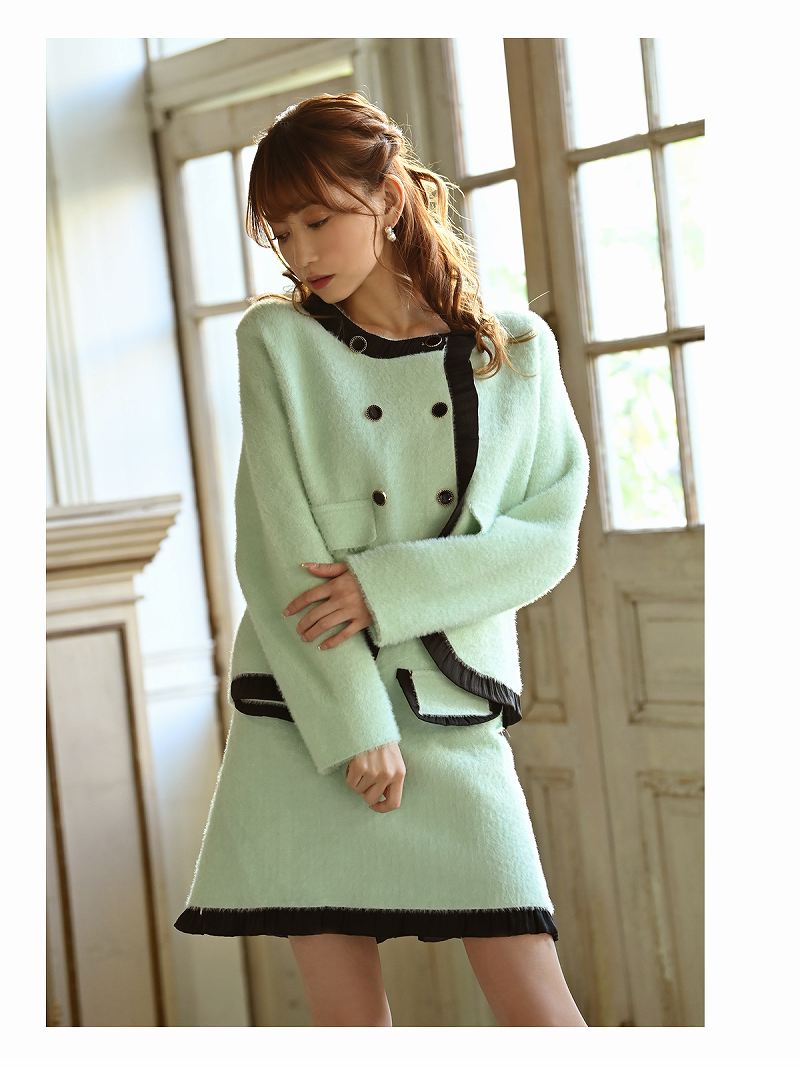 キャバスーツ ダブルジャケット ママスーツ アシンメトリー ナイトスーツ 可愛い Belsia(M)(ブラック/ホワイト/グリーン) [509854]