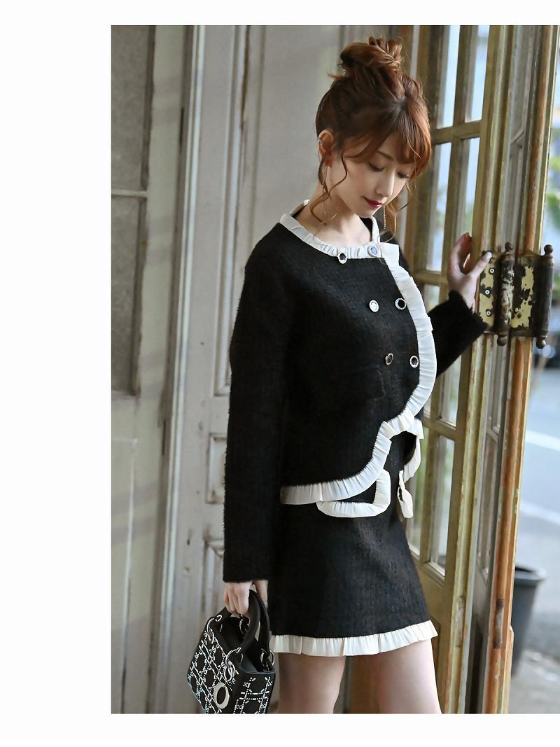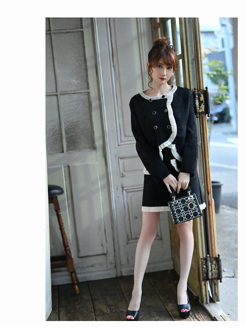 キャバスーツ ダブルジャケット ママスーツ アシンメトリー ナイトスーツ 可愛い Belsia(M)(ブラック/ホワイト/グリーン)