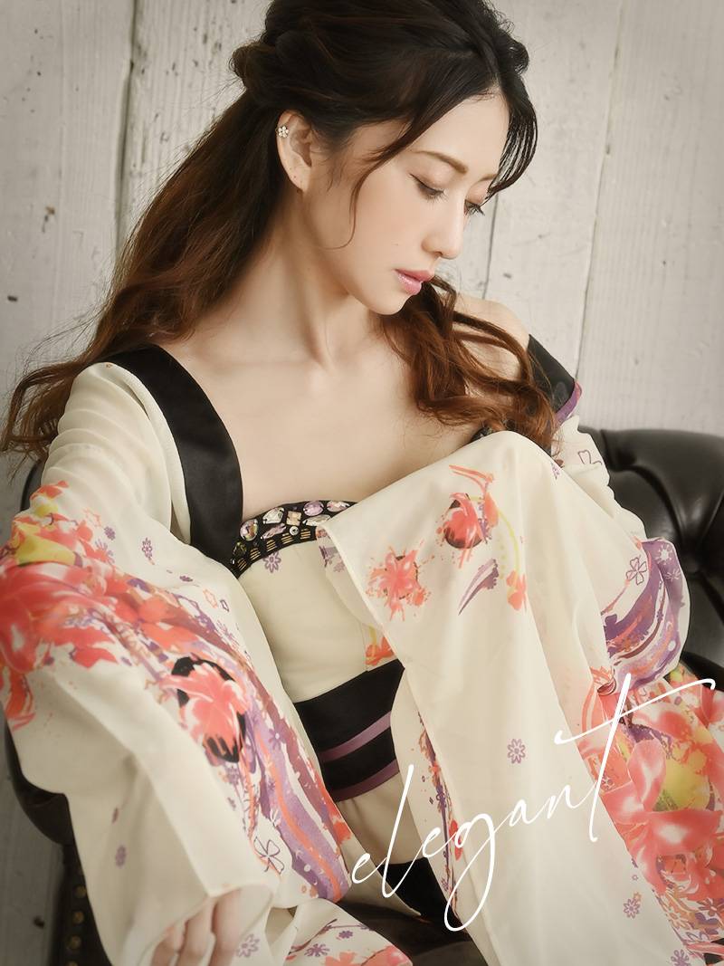 ☆軽やかなシフォン素材が美しく揺れ、キャバドレスやコスプレとしても大活躍♪ 和装の華やかさを取り入れた、大人のためのゴージャススタイル。