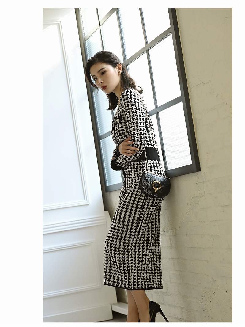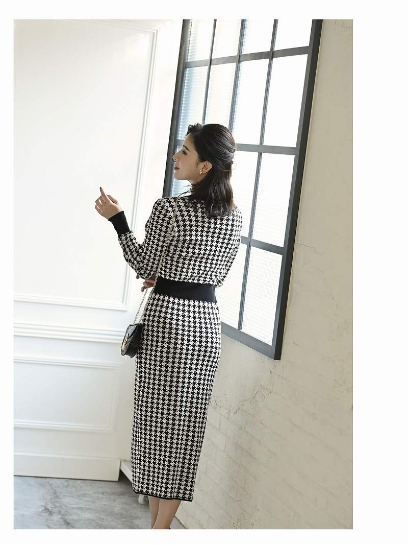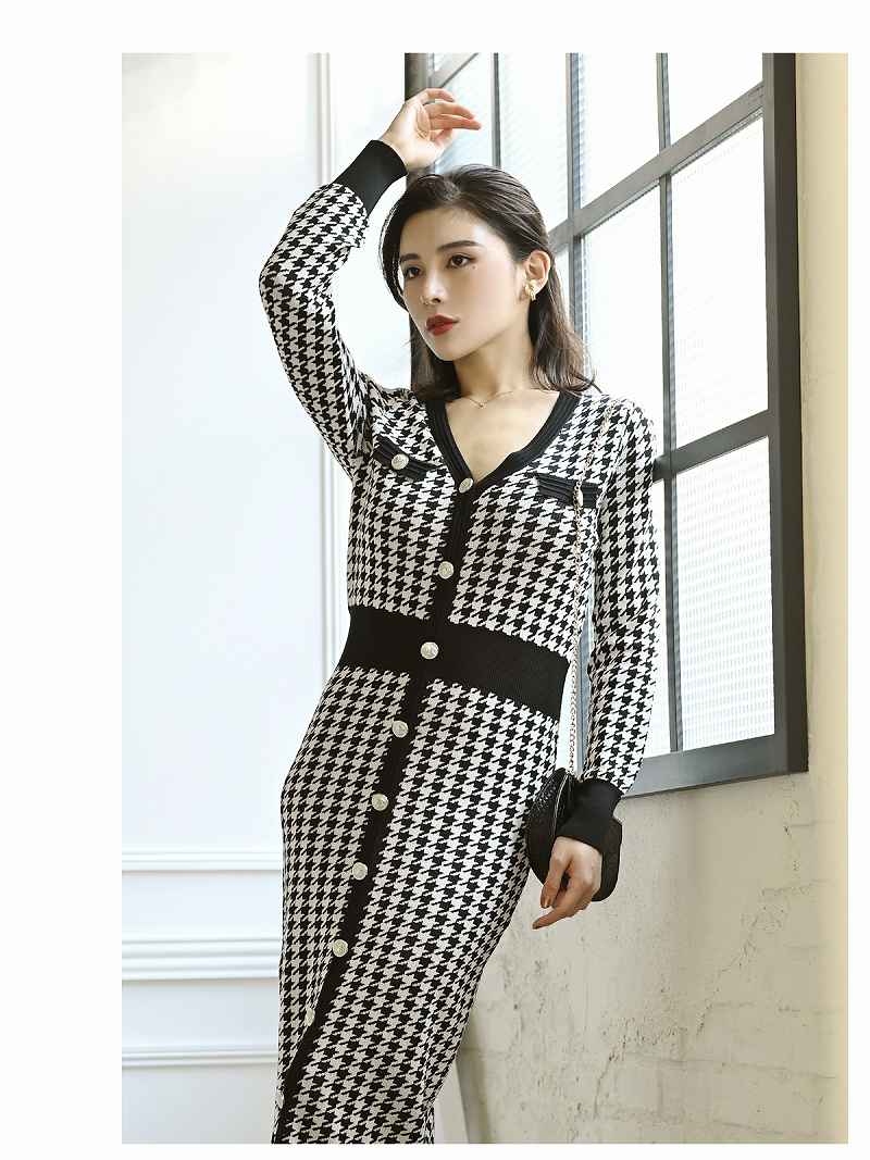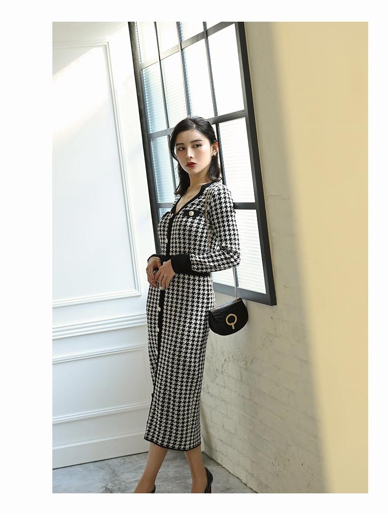 ワンピース キャバドレス 韓国風 千鳥柄 ロング お出かけ デート DaysPiece(M)(ブラック)
