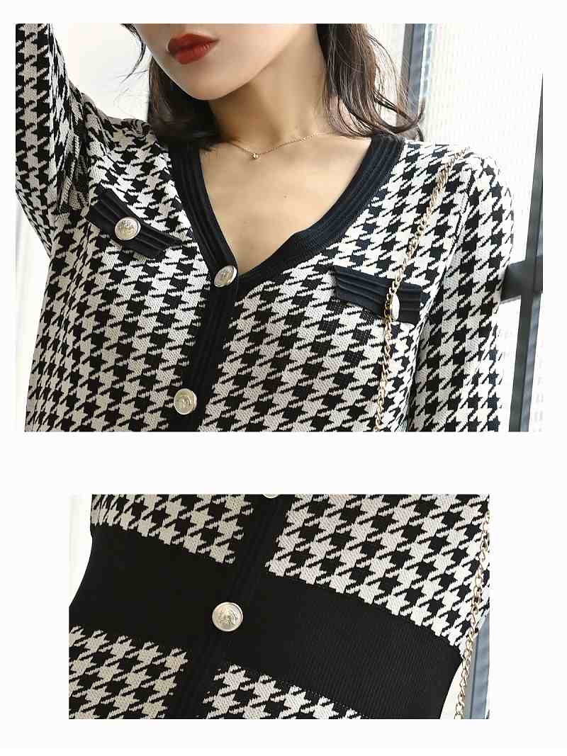 ☆全体の千鳥柄がボディラインを拾いすぎず、またウエストのくびれデザインがキュッと引き締まった印象にしてくれます♪