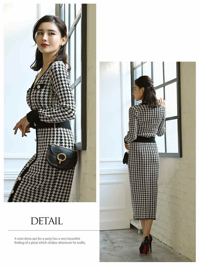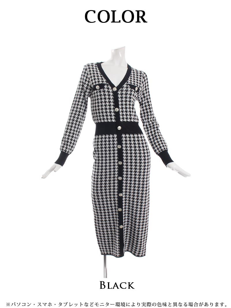ワンピース キャバドレス 韓国風 千鳥柄 ロング お出かけ デート DaysPiece(M)(ブラック) [507733-130-100]