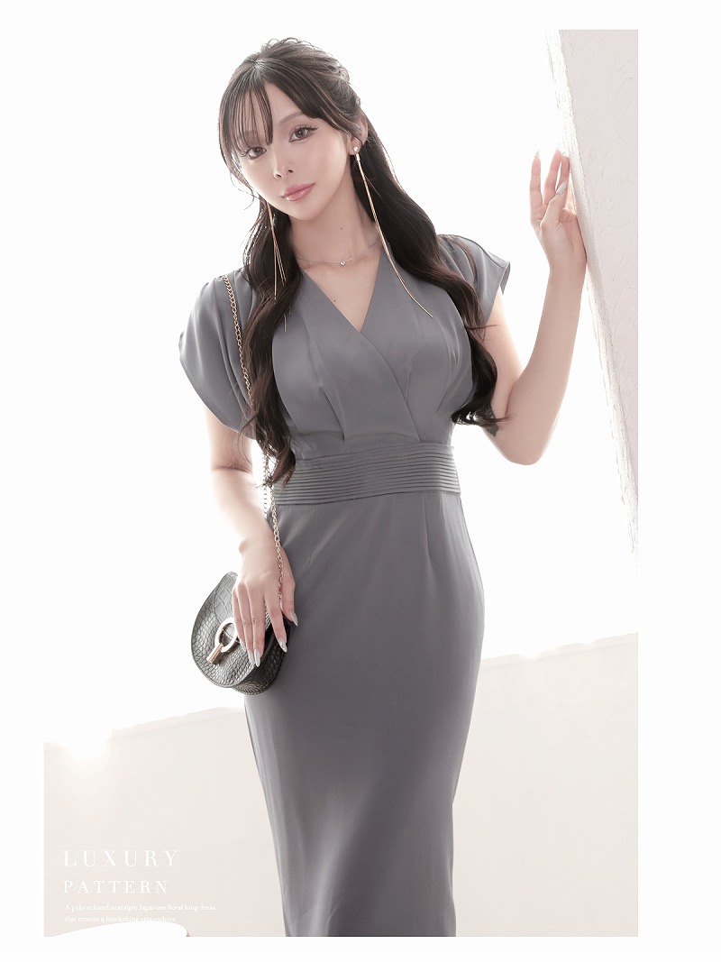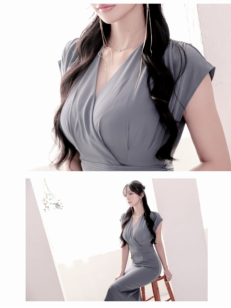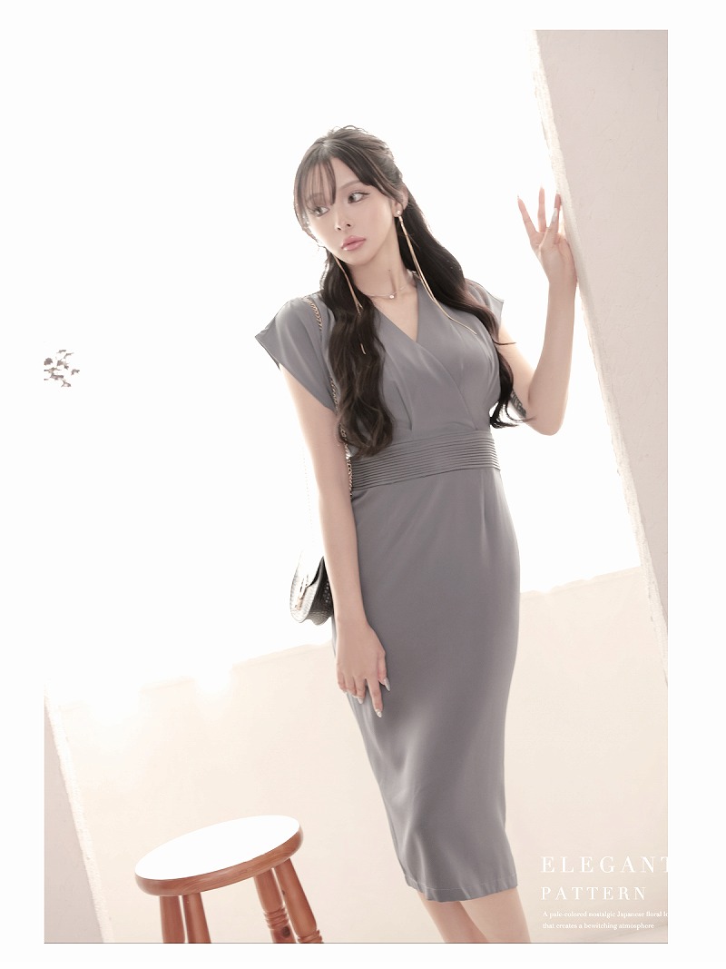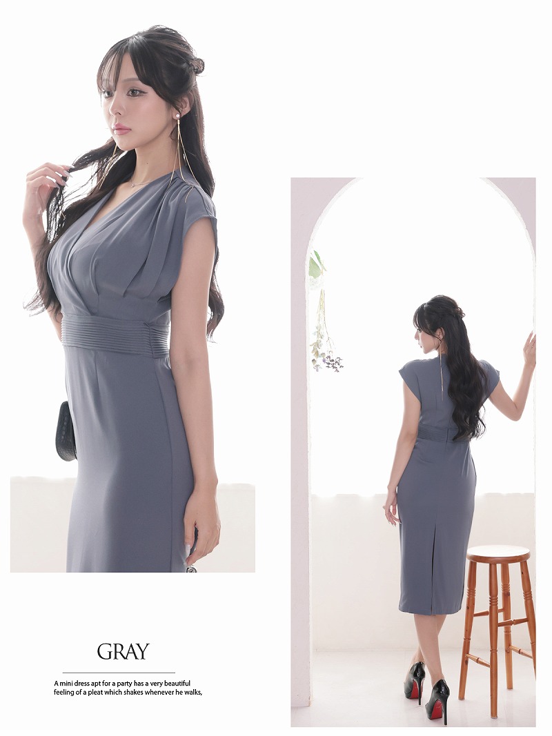 ☆上品でエレガントな雰囲気を纏うグレーカラーのタイトな韓国ワンピースです。