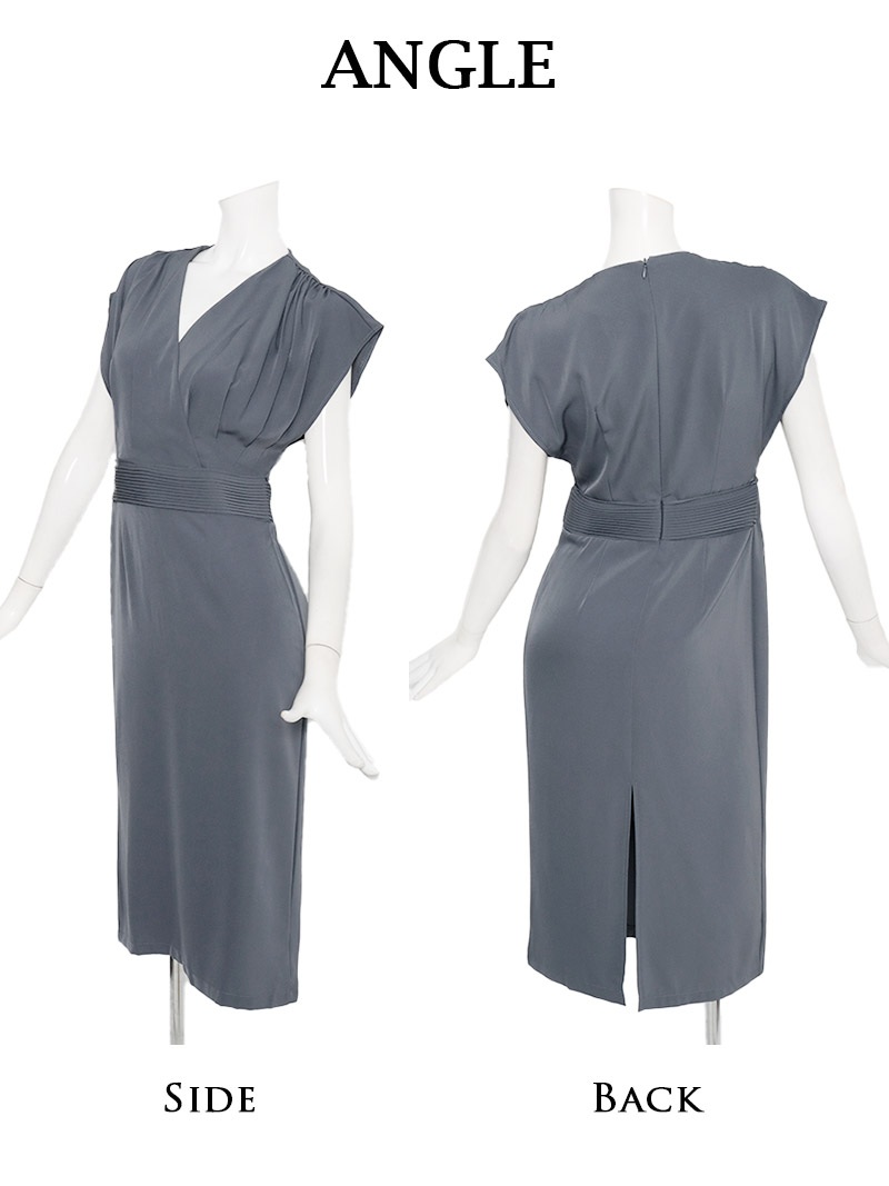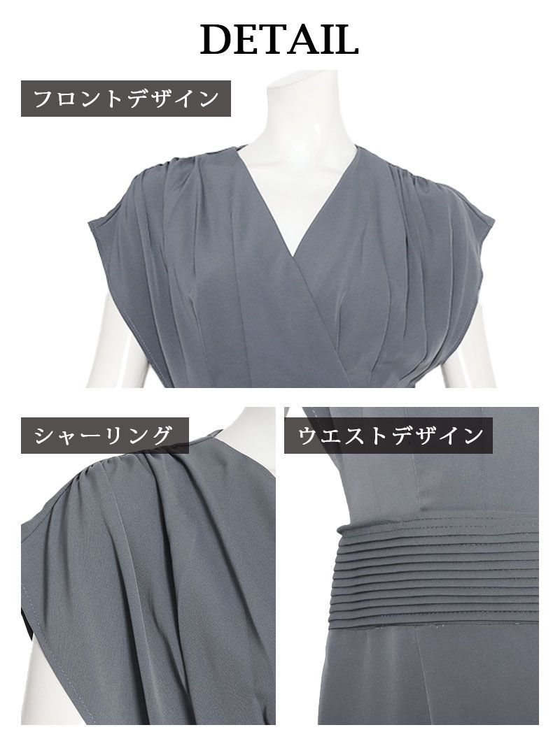 ☆カシュクール風の胸元とノースリーブデザインが、洗練された大人の魅力を演出します。