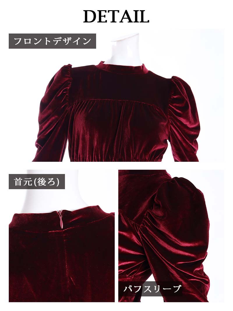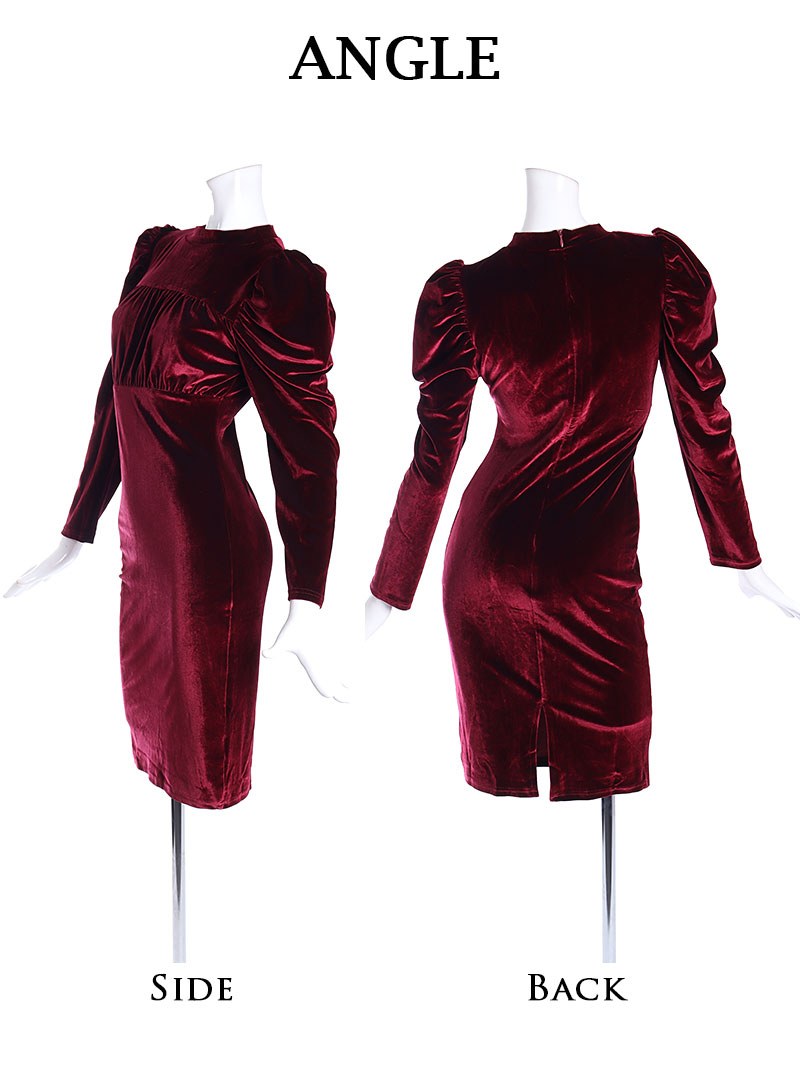 ☆上品なベロア素材とハイネックデザインで、パーティーシーンにぴったりのキャバドレス。