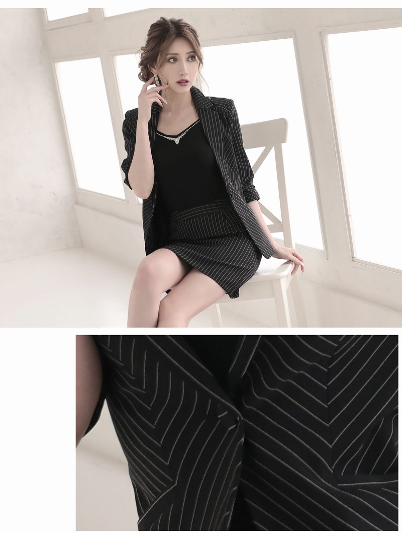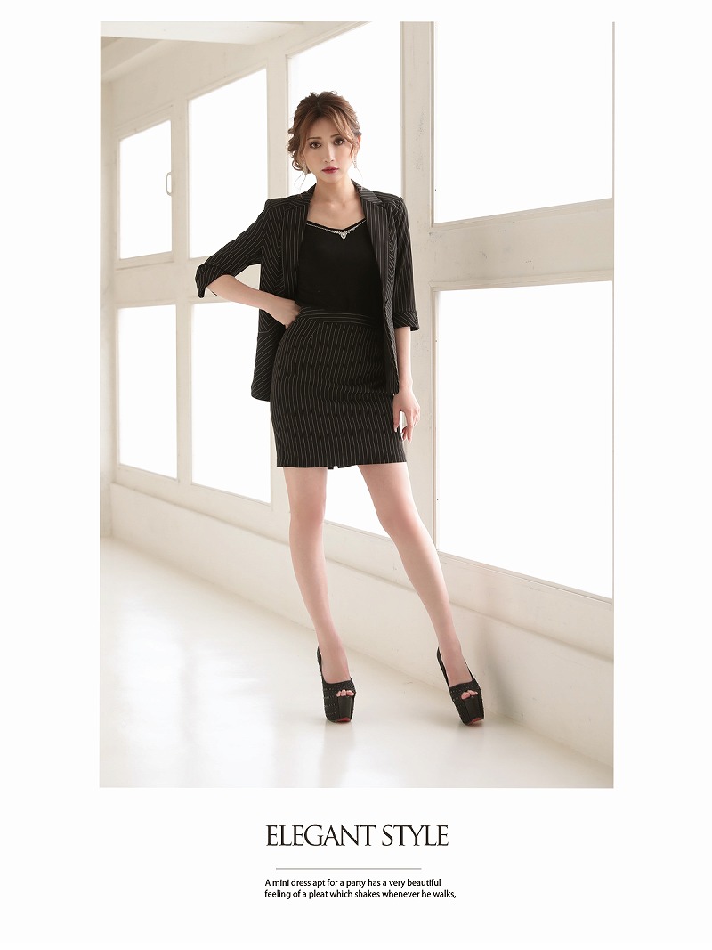 キャバスーツ コンパニオン キャバ嬢 ナイトスーツ 式スーツ セットアップ Belsia(S/M/L/XL)(ブラック) [509847]