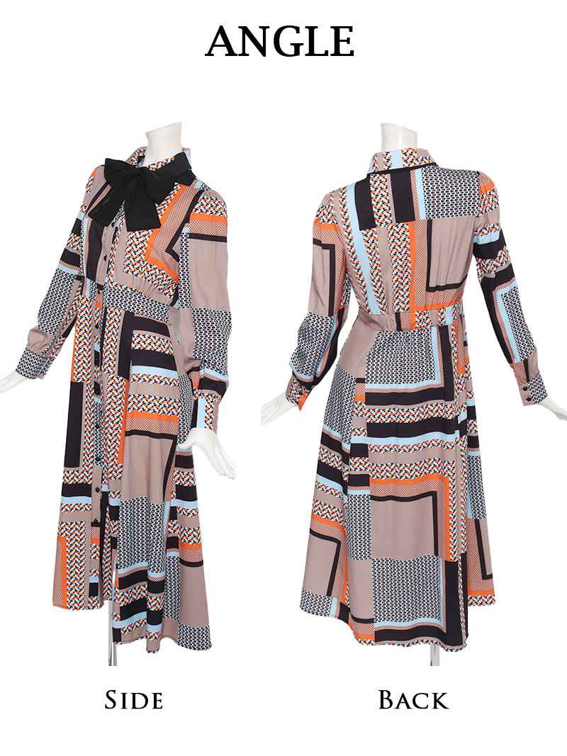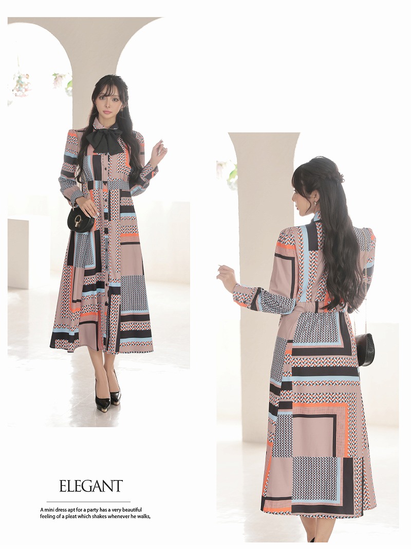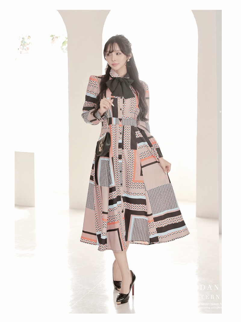 ☆レトロなジオメトリック柄が大人っぽく、お店で一目置かれること間違いなしの上品なロングワンピースです!