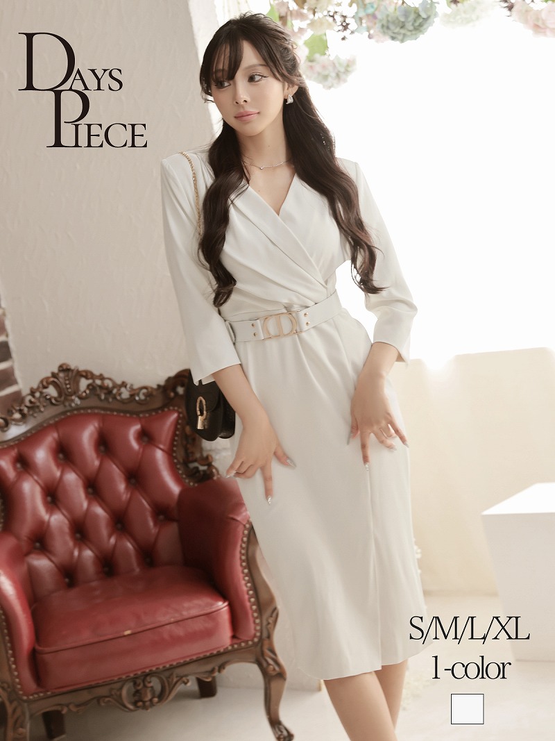 ワンピース キャバドレス ワンピース タイト カシュクール ラップ ベルト付き DaysPiece(S/M/L/XL)(ホワイト) [510113]