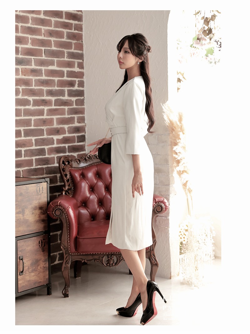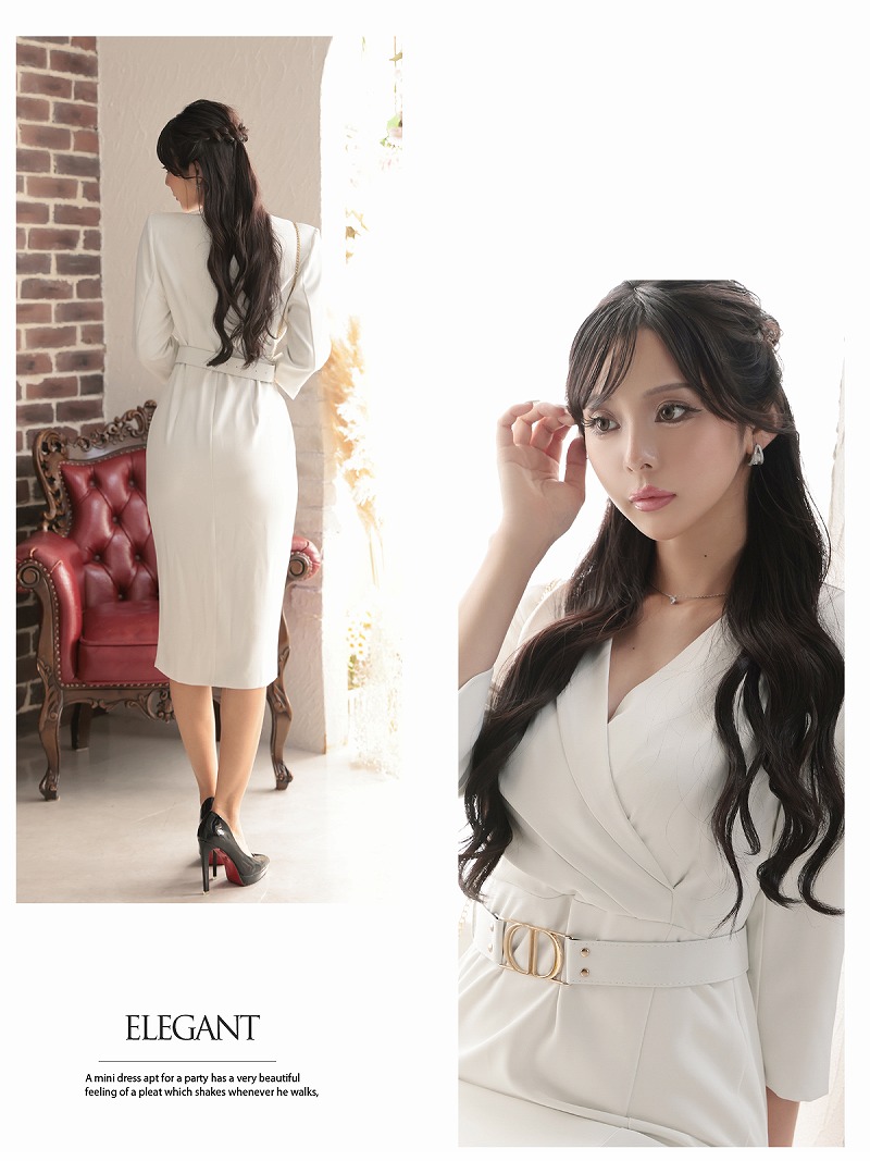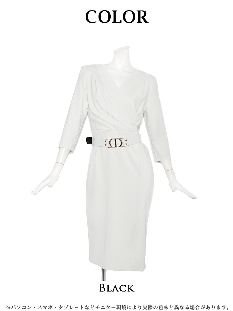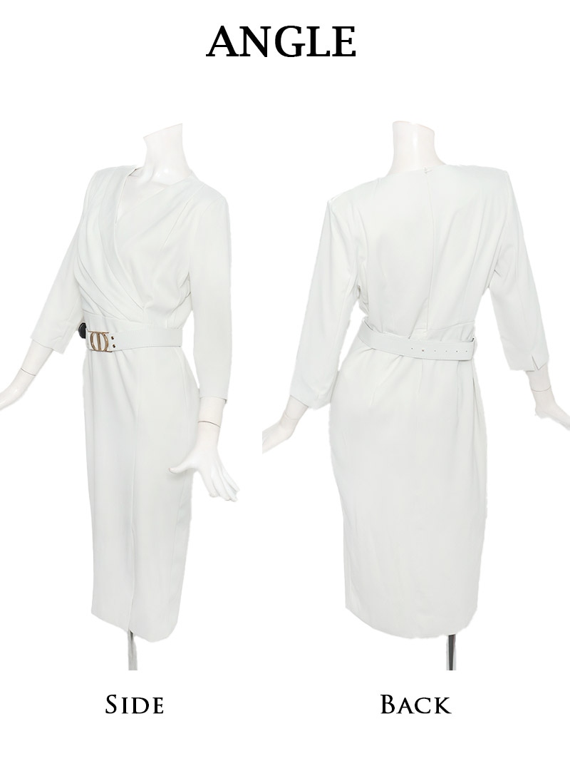 ワンピース キャバドレス ワンピース タイト カシュクール ラップ ベルト付き DaysPiece(S/M/L/XL)(ホワイト)