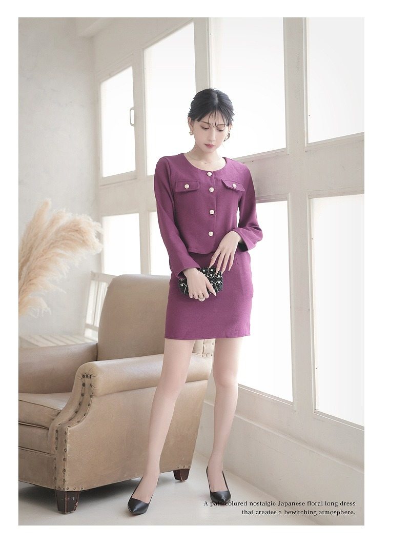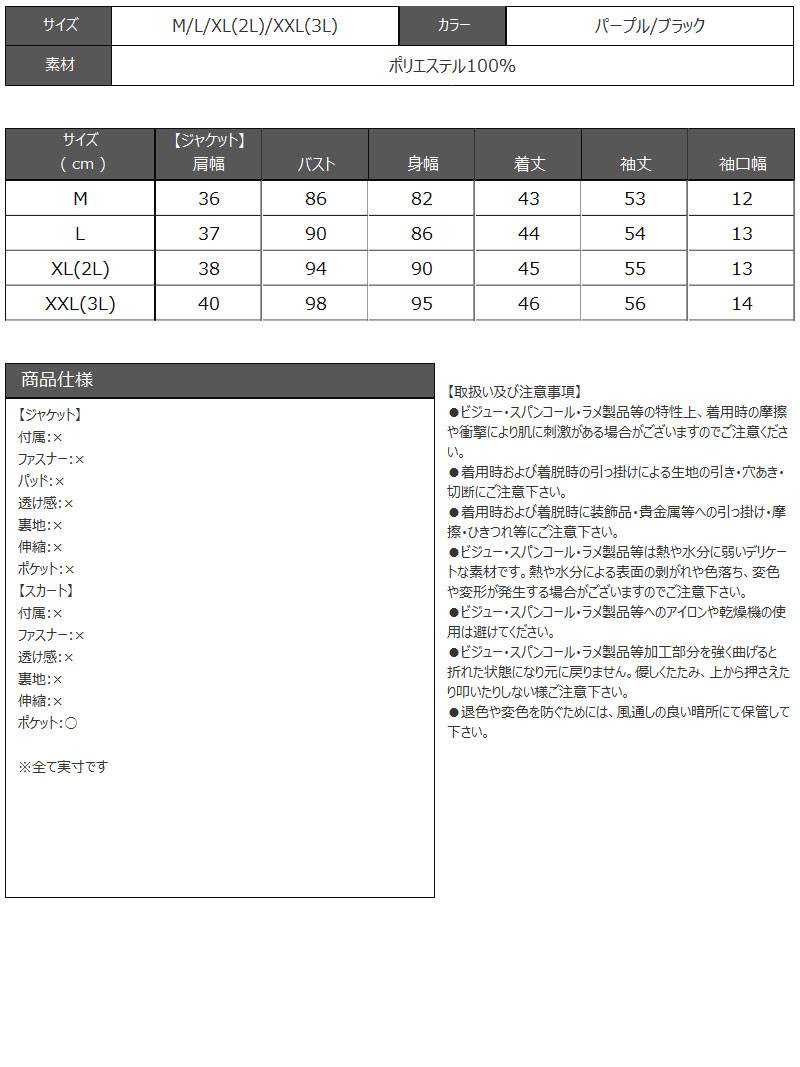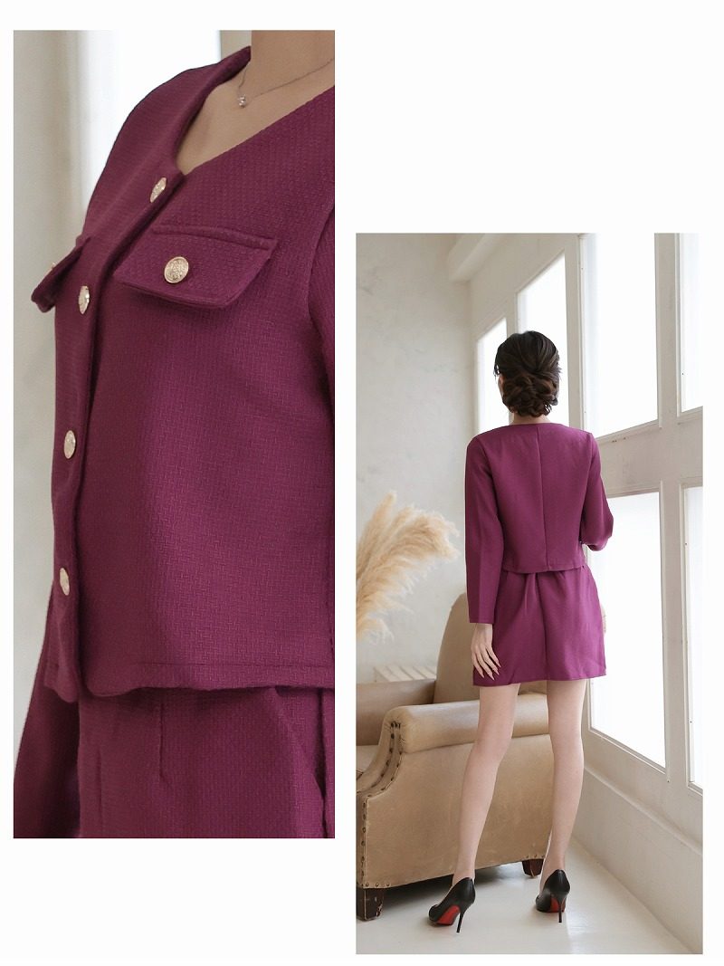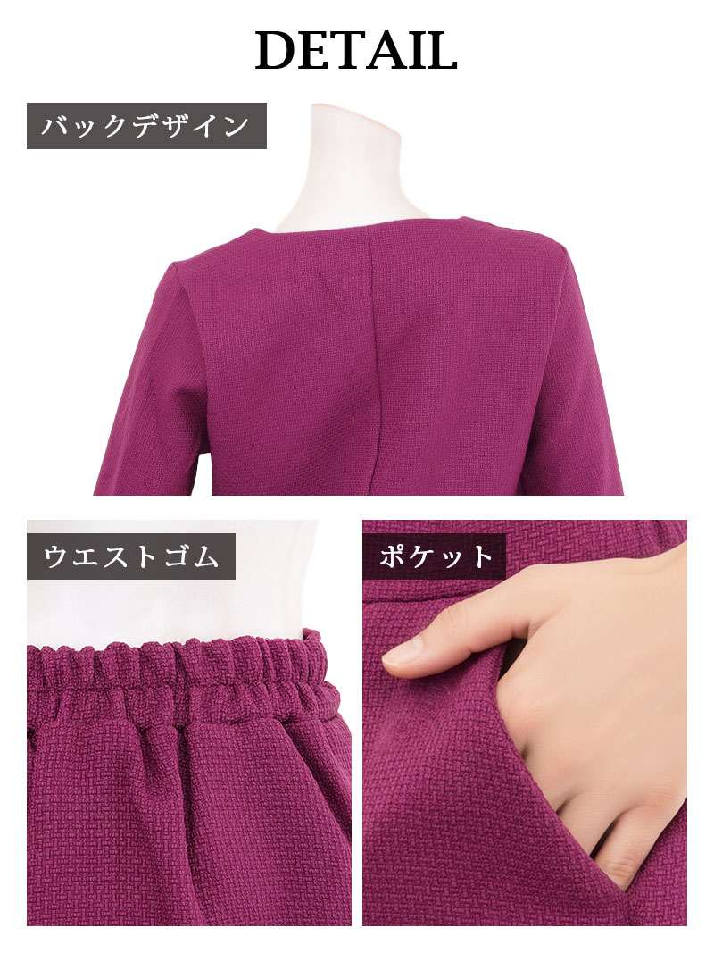 キャバスーツ セットアップ ツイード ノーカラー ゴールドボタン 長袖 Belsia(M/L/XL(2L)/XXL(3L))(パープル/ブラック) [510147]