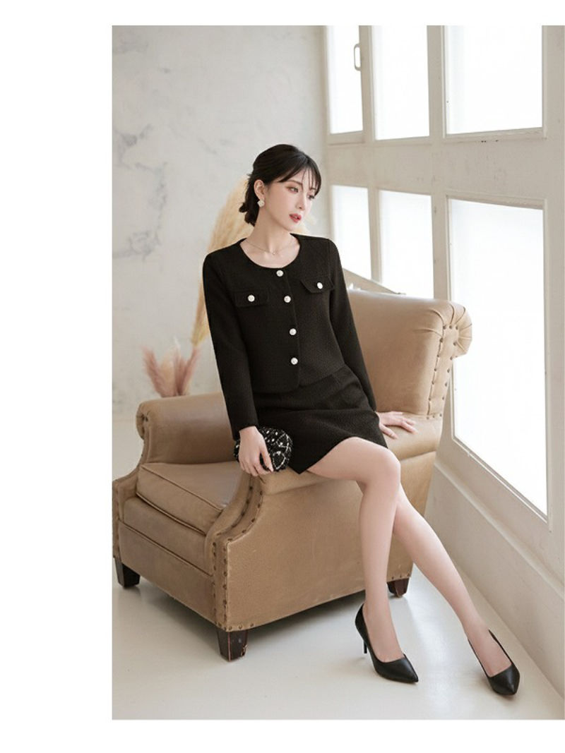 ☆ツイード生地特有の質感が、大人の余裕を感じさせる上品さを演出します。