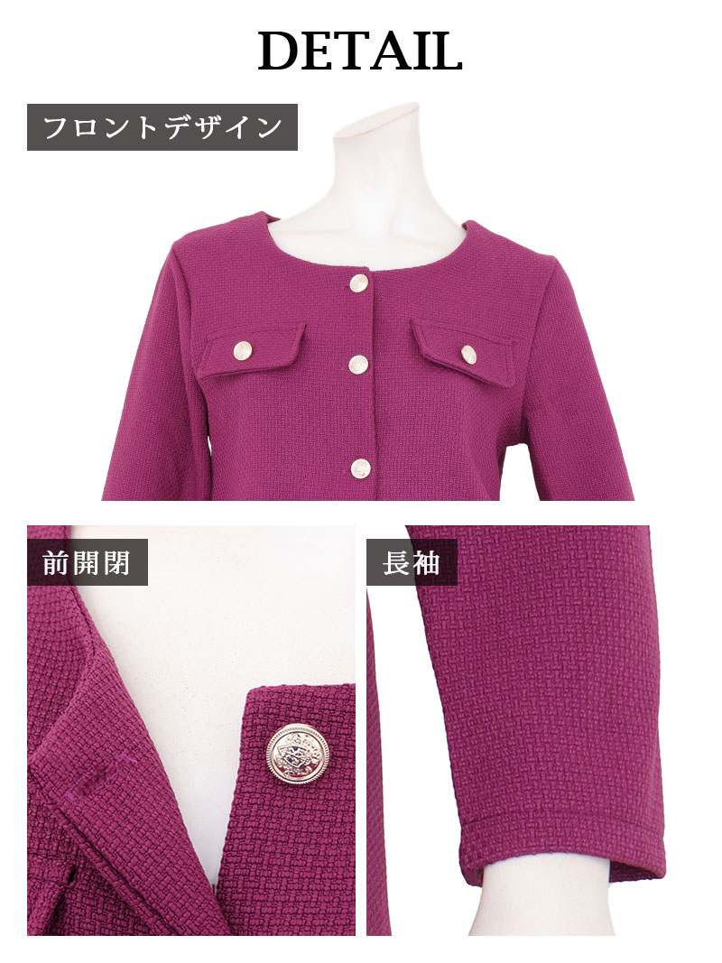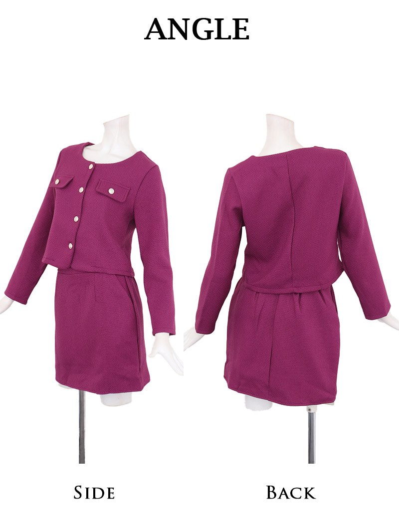 キャバスーツ セットアップ ツイード ノーカラー ゴールドボタン 長袖 Belsia(M/L/XL(2L)/XXL(3L))(パープル/ブラック)