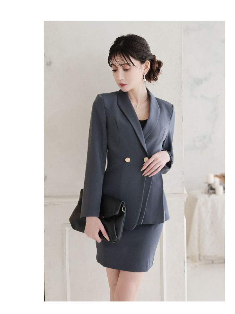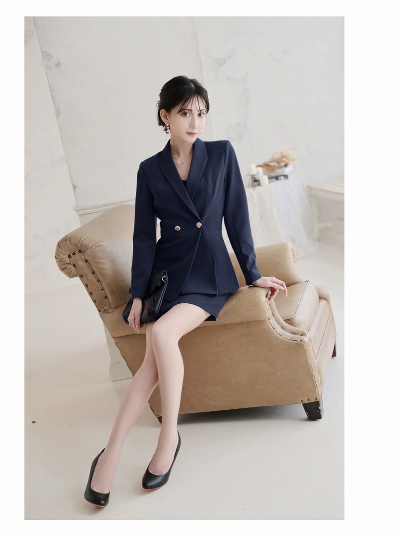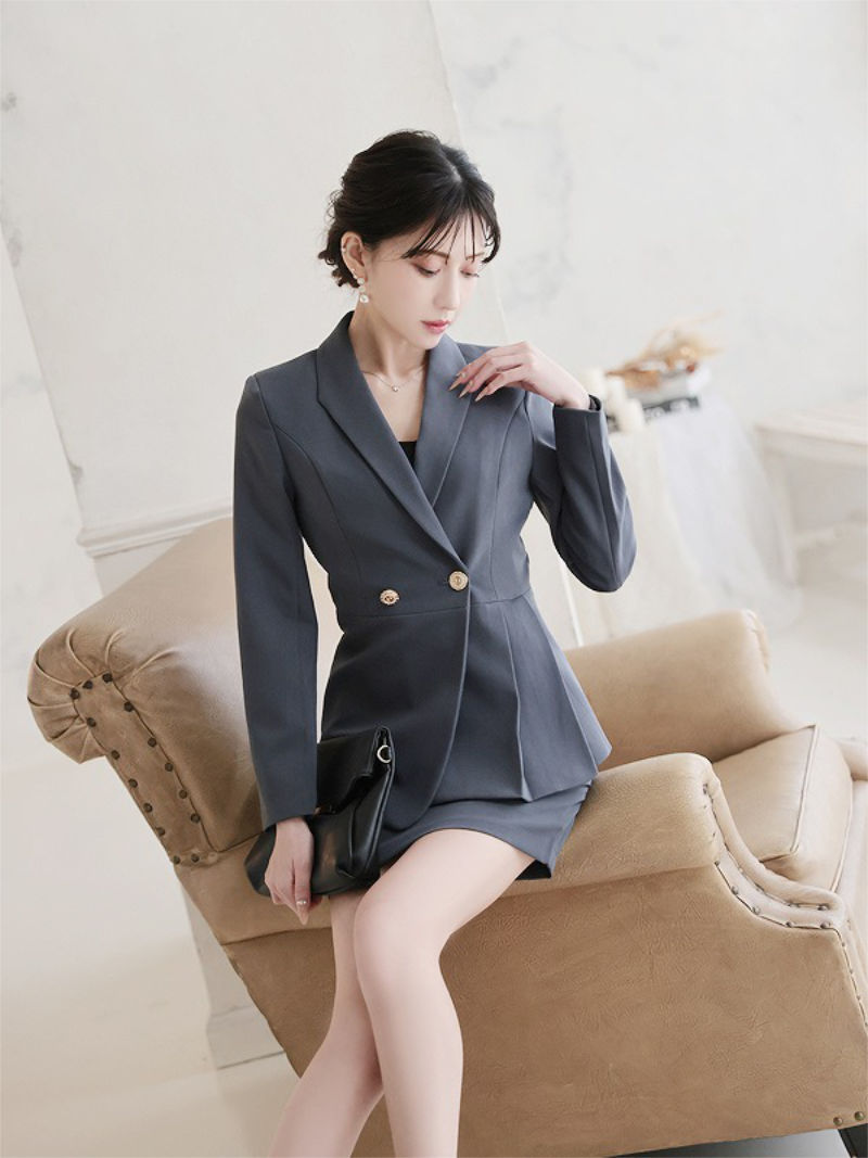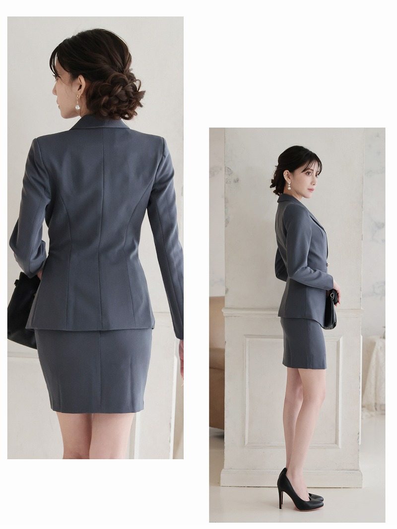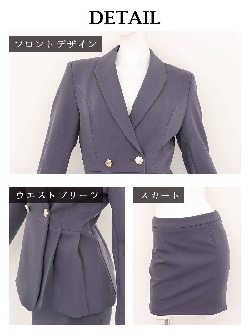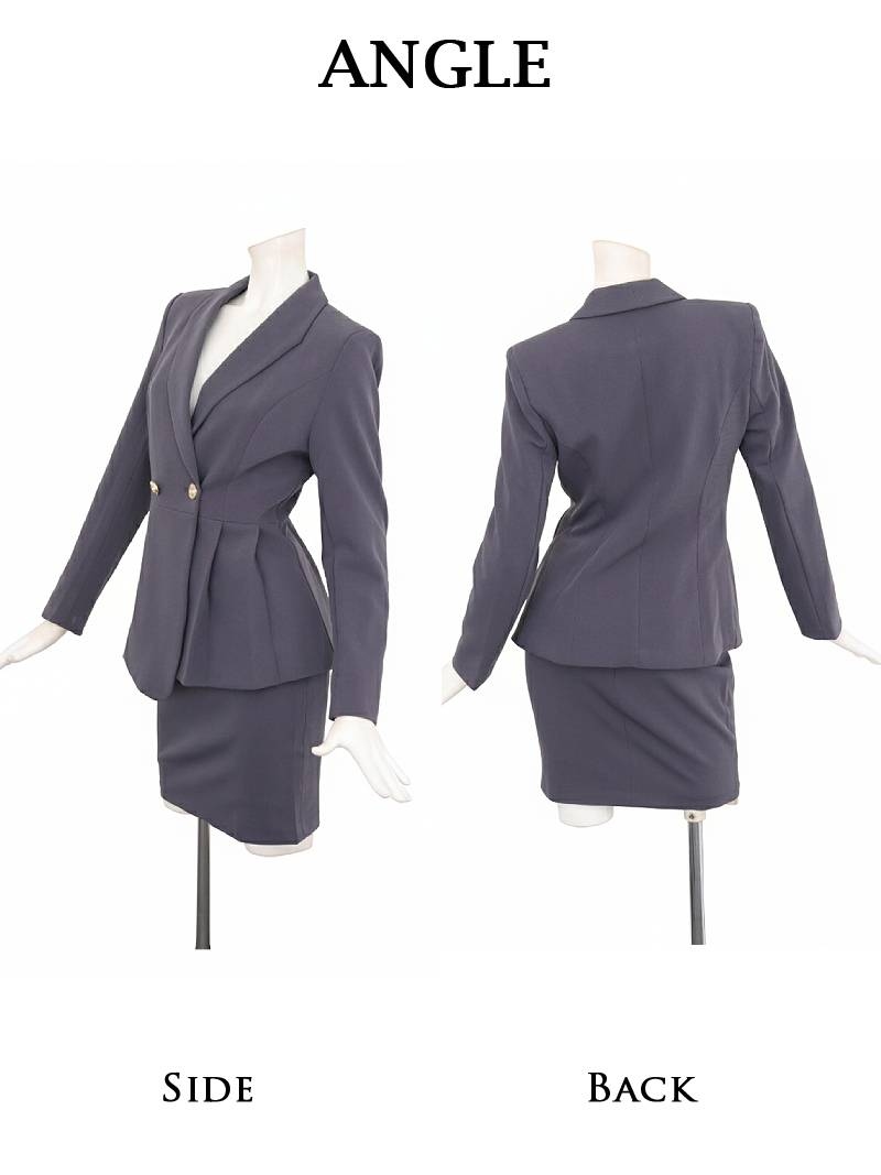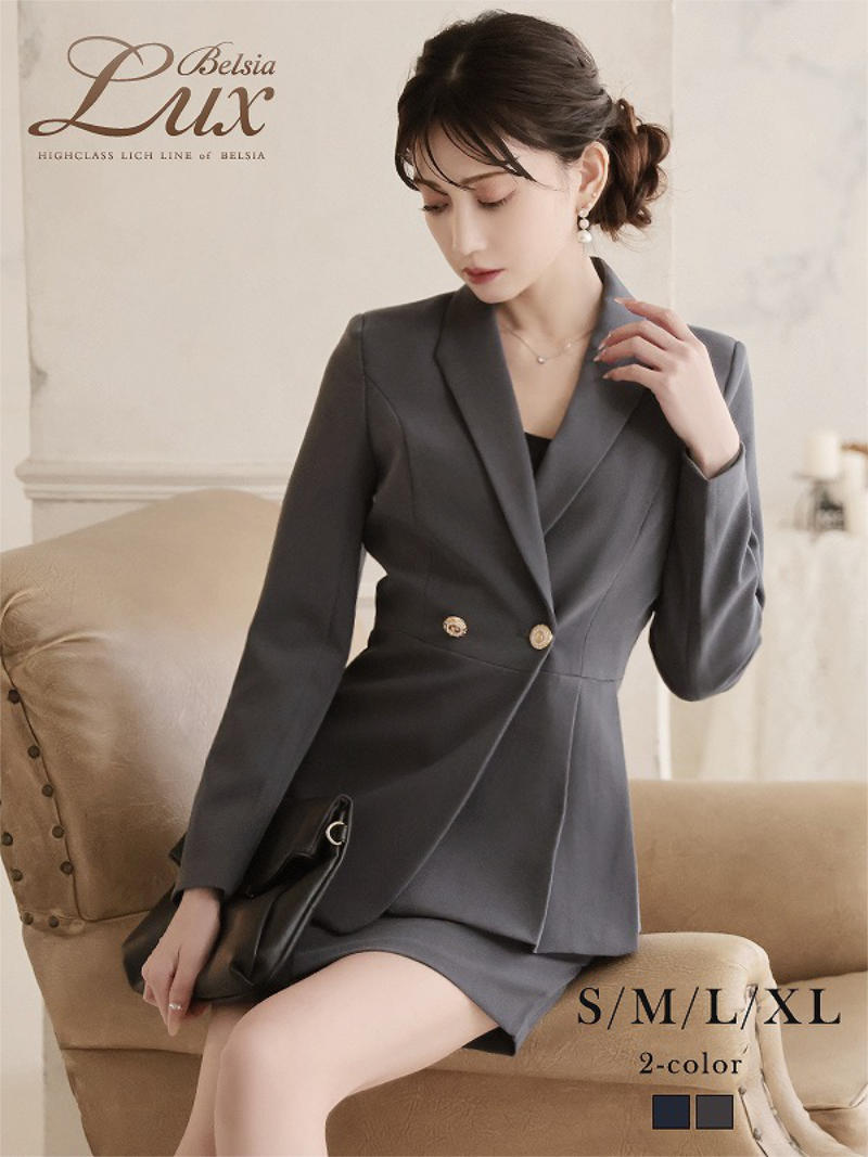 キャバスーツ セットアップ テーラードジャケット ミニスカート グレー タイト Belsia.LUX(S/M/L/XL(2L))(ネイビー/グレー) [510137]