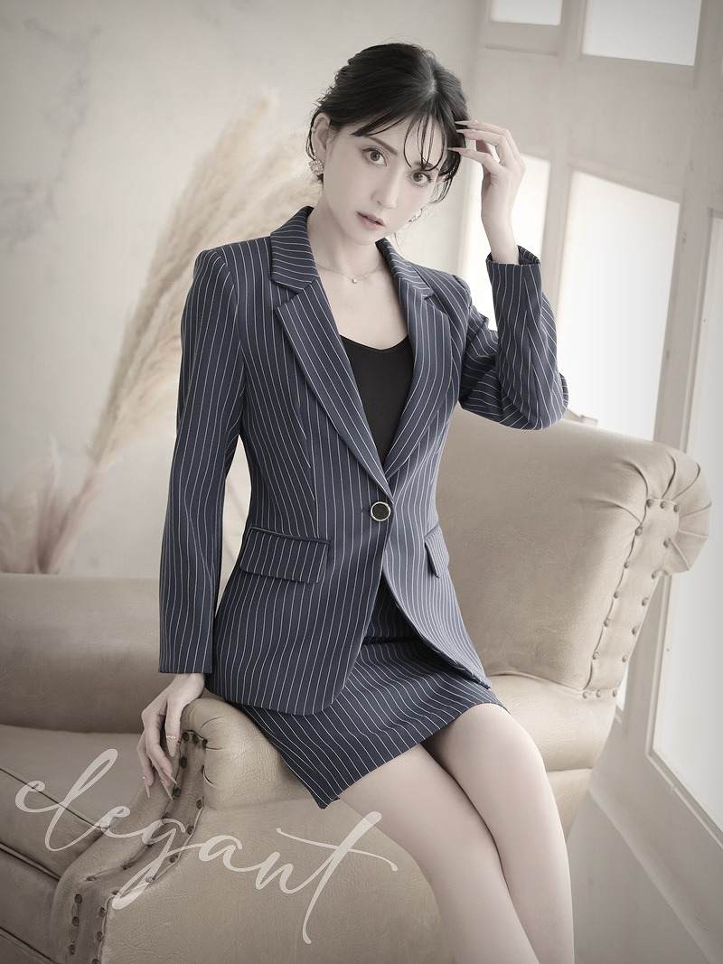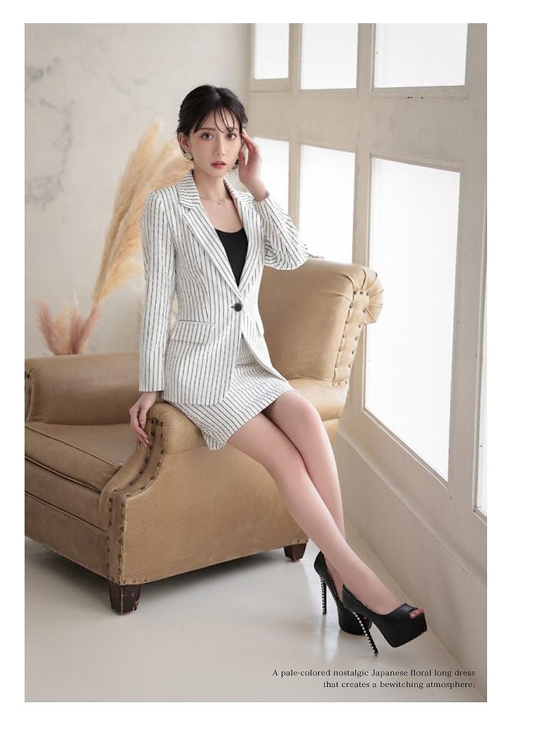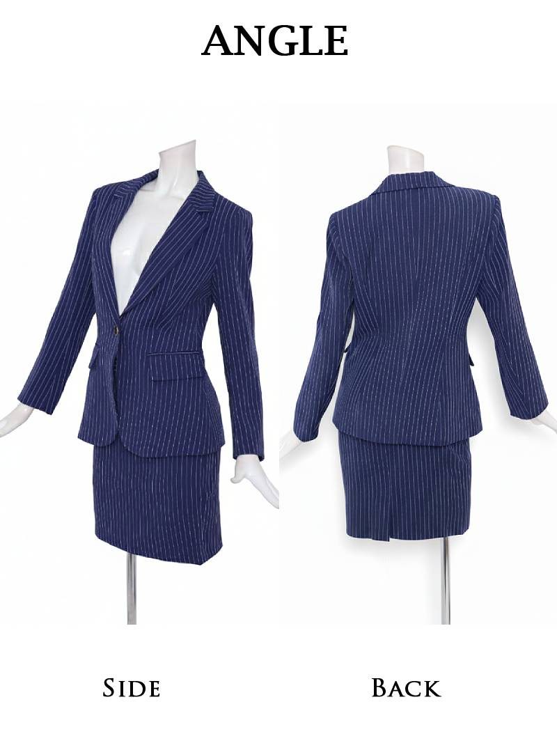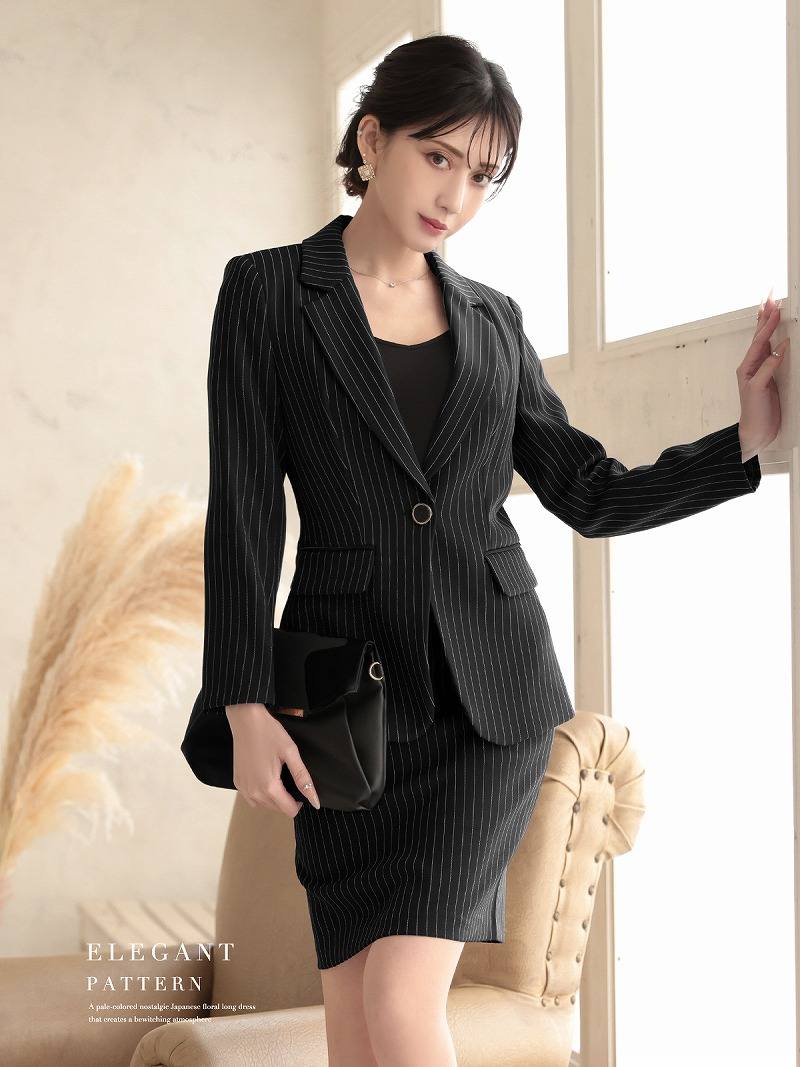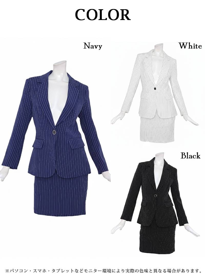 キャバスーツ ビジネススーツ 上質 フォーマル 膝丈 ストライプ Belsia.LUX(S/M/L/XL(2L))(ホワイト/ブラック/ネイビー)