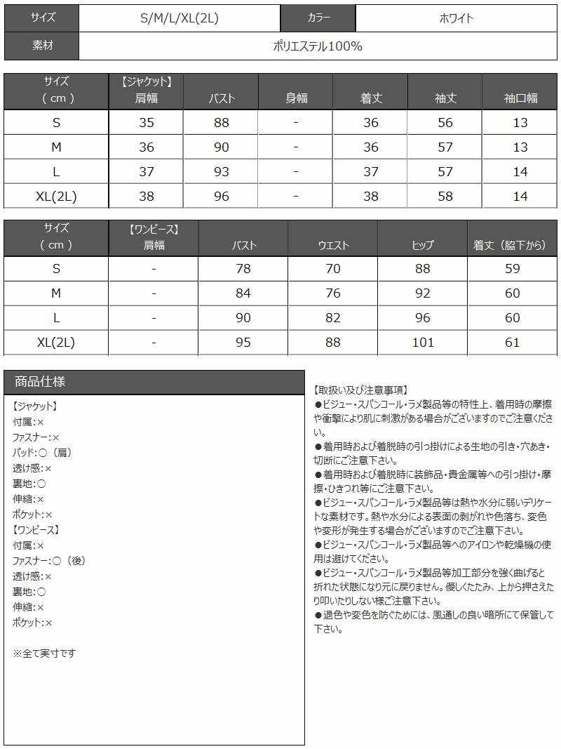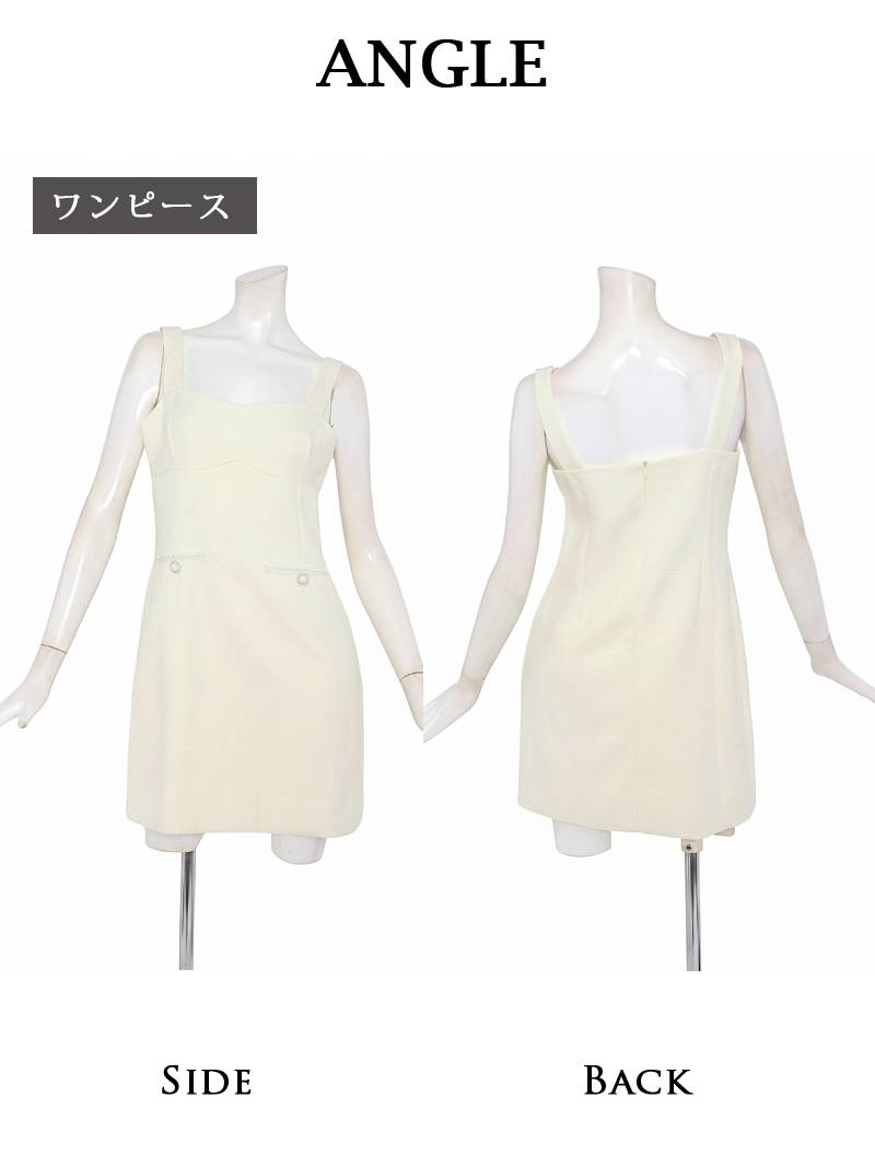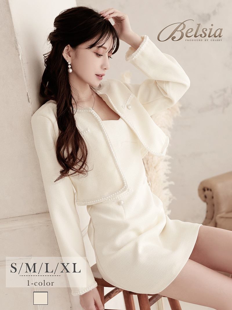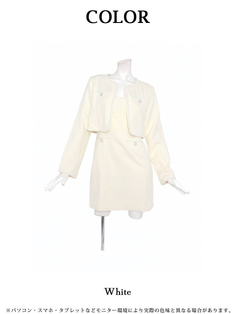 キャバスーツ 白 ツイード ノーカラージャケット ボレロ風 ワンピーススーツ Belsia(S/M/L/XL(2L))(ホワイト) [510148]