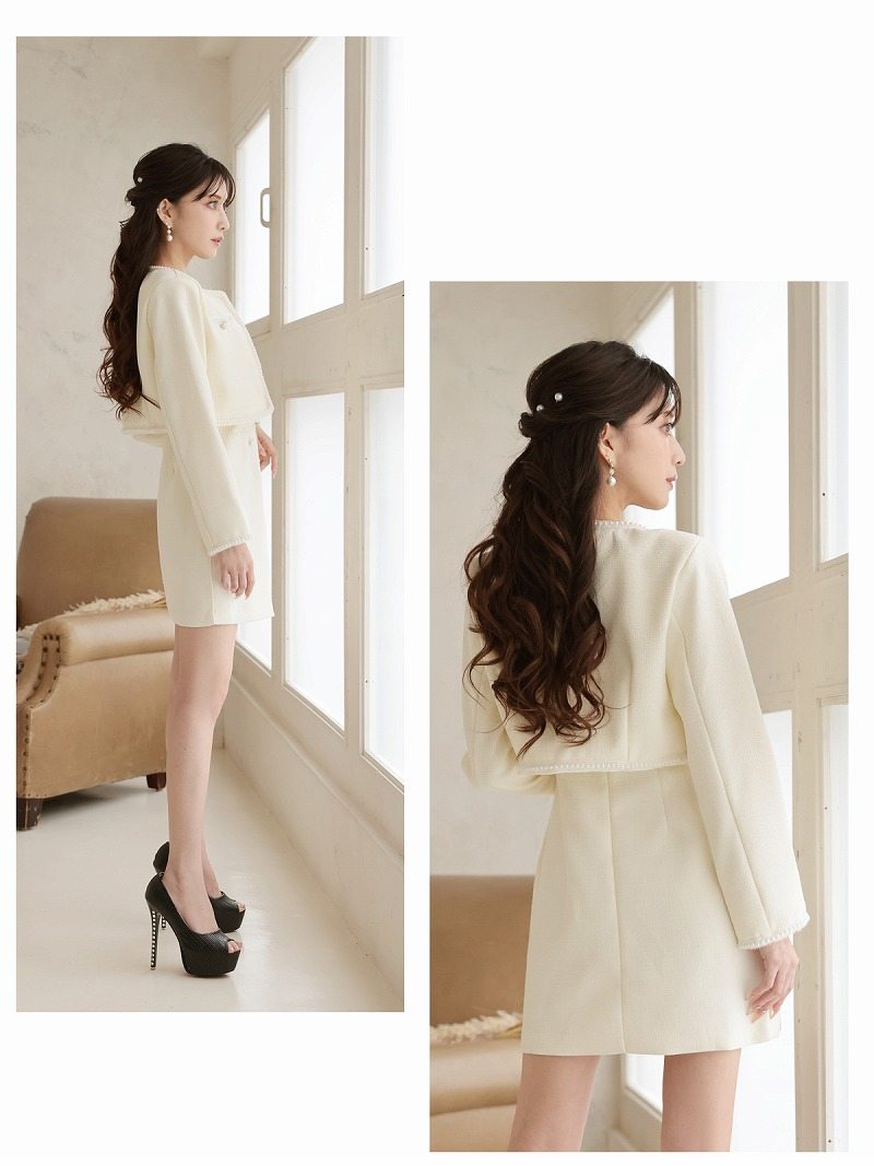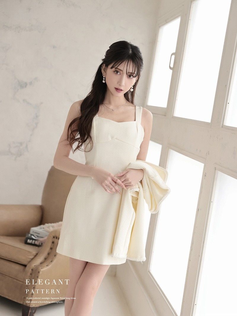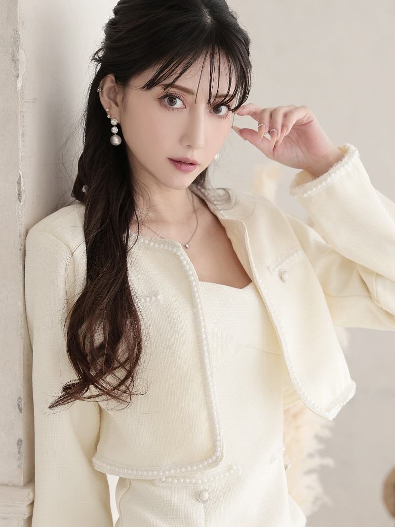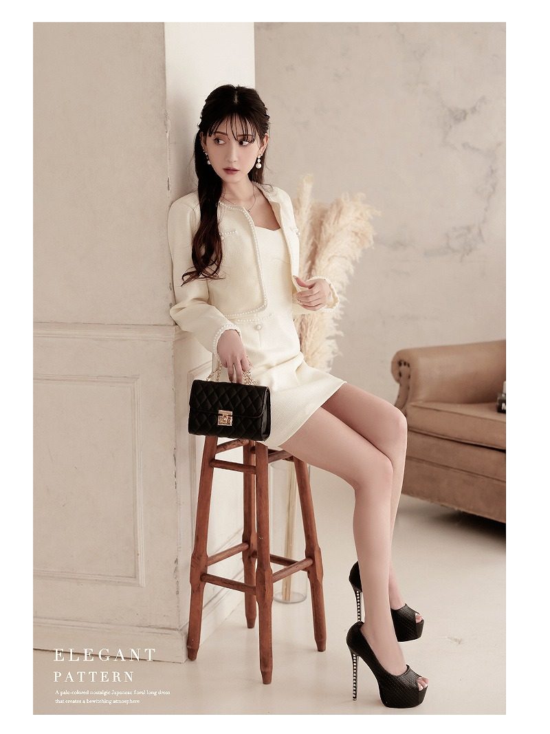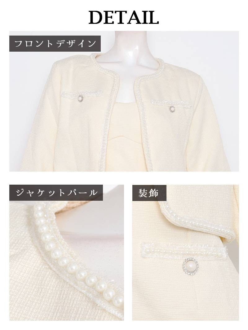 キャバスーツ 白 ツイード ノーカラージャケット ボレロ風 ワンピーススーツ Belsia(S/M/L/XL(2L))(ホワイト)