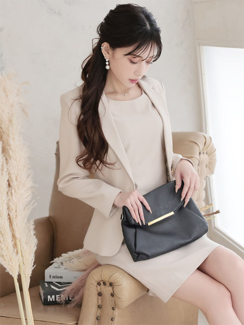 キャバスーツ フォーマル ワンピーススーツ 式スーツ 大きいサイズ 上品 上質 Belsia.LUX(S/M/L/XL(2L))(ベージュ/ネイビー)