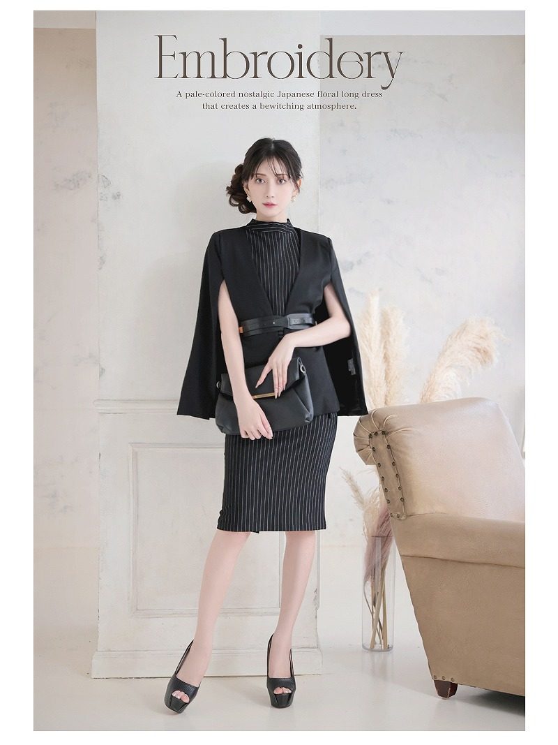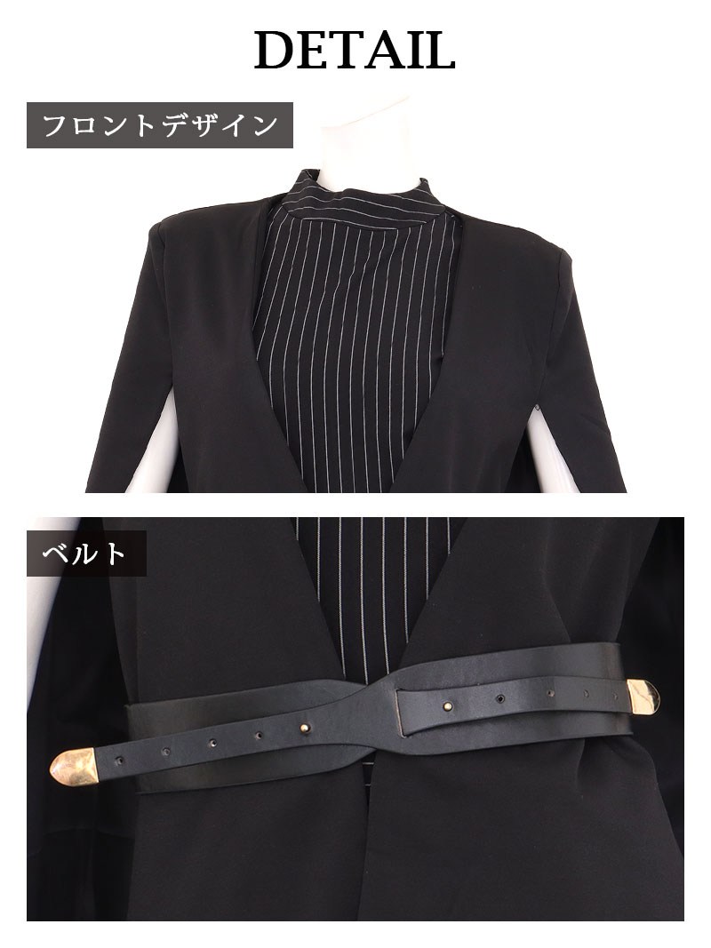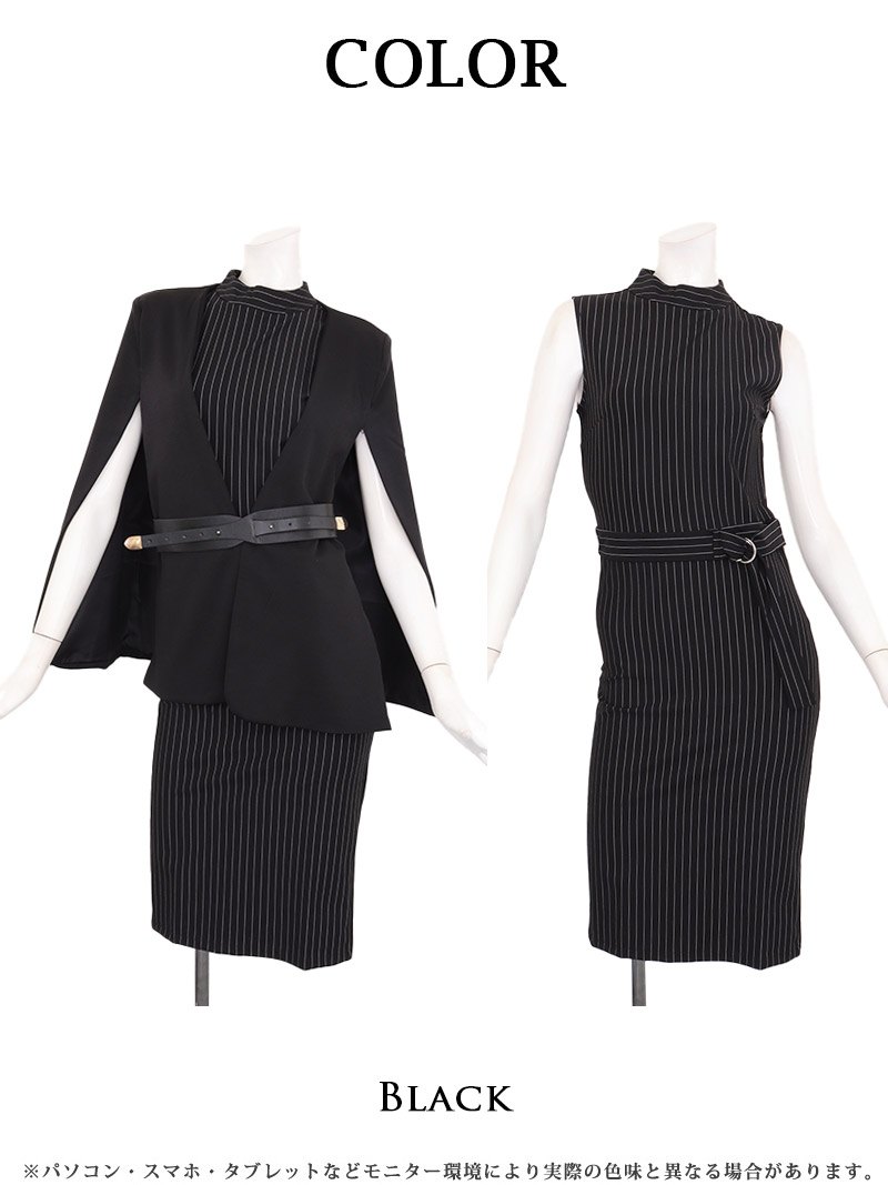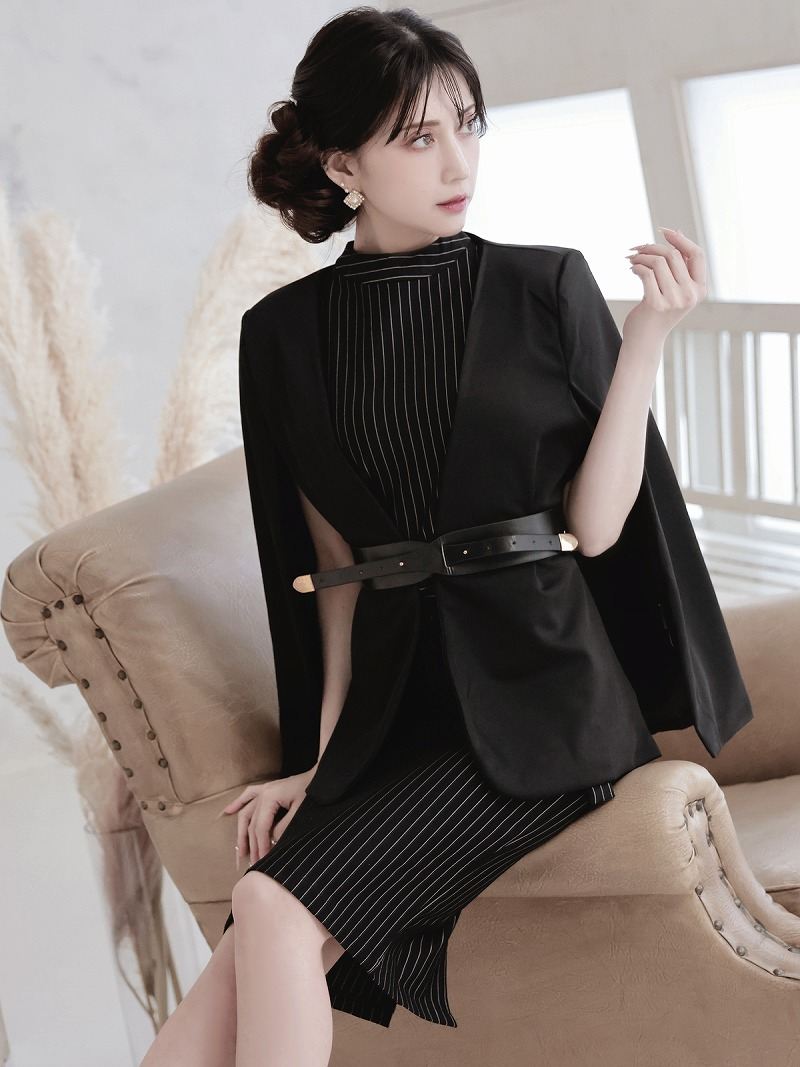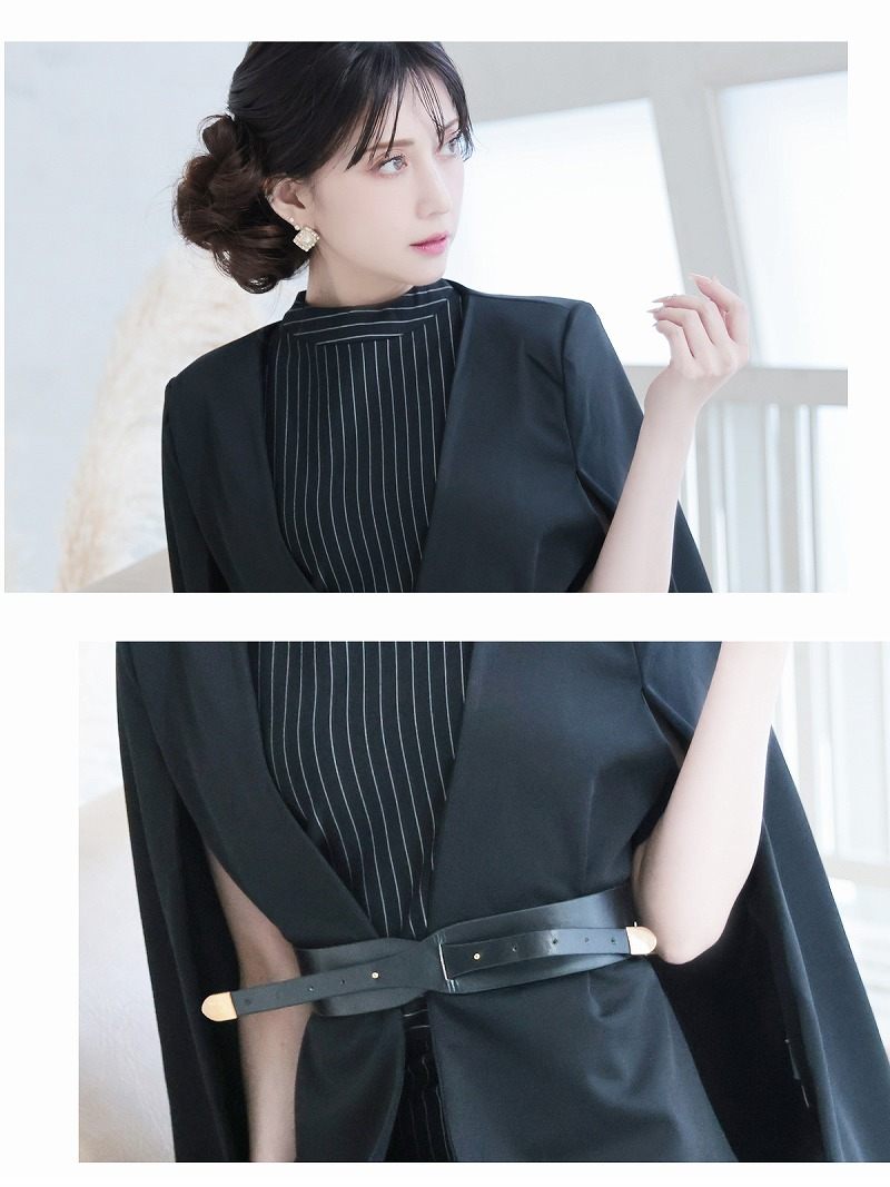 キャバスーツ ケープ風 ワンピーススーツ 上質 エレガント ボレロ風 Belsia.LUX(S/M/L/XL(2L))(ブラック) [510150]
