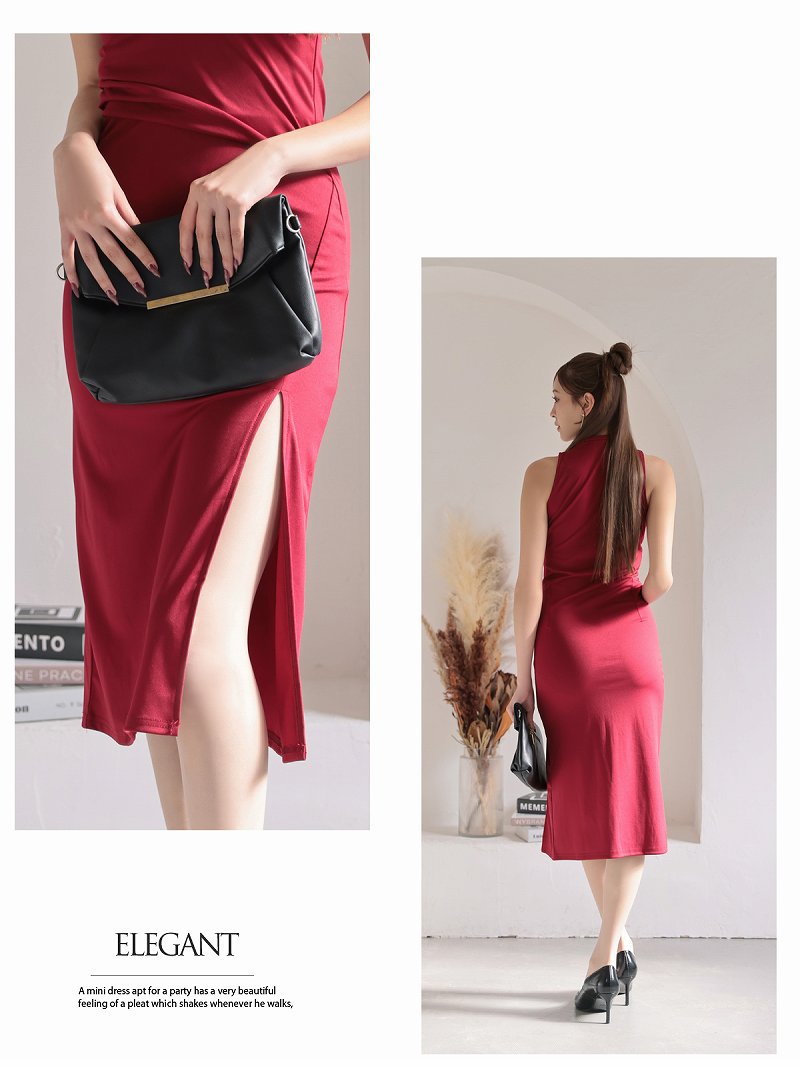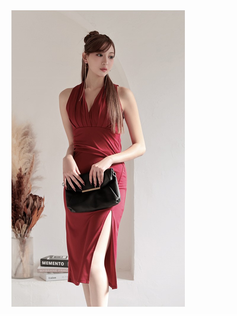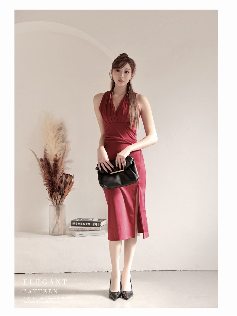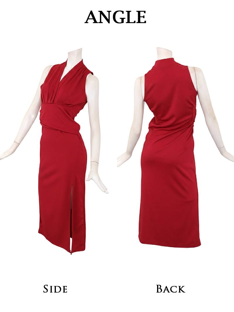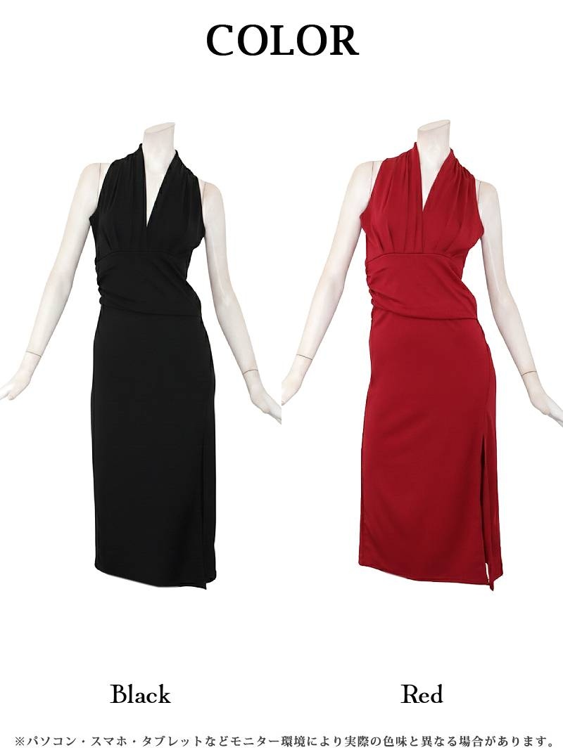 ワンピース キャバドレス アメスリ 谷間みせ ウエスト切り替え パーティーフォーマル ストレッチ DaysPiece(S/M/L)(レッド/ブラック)
