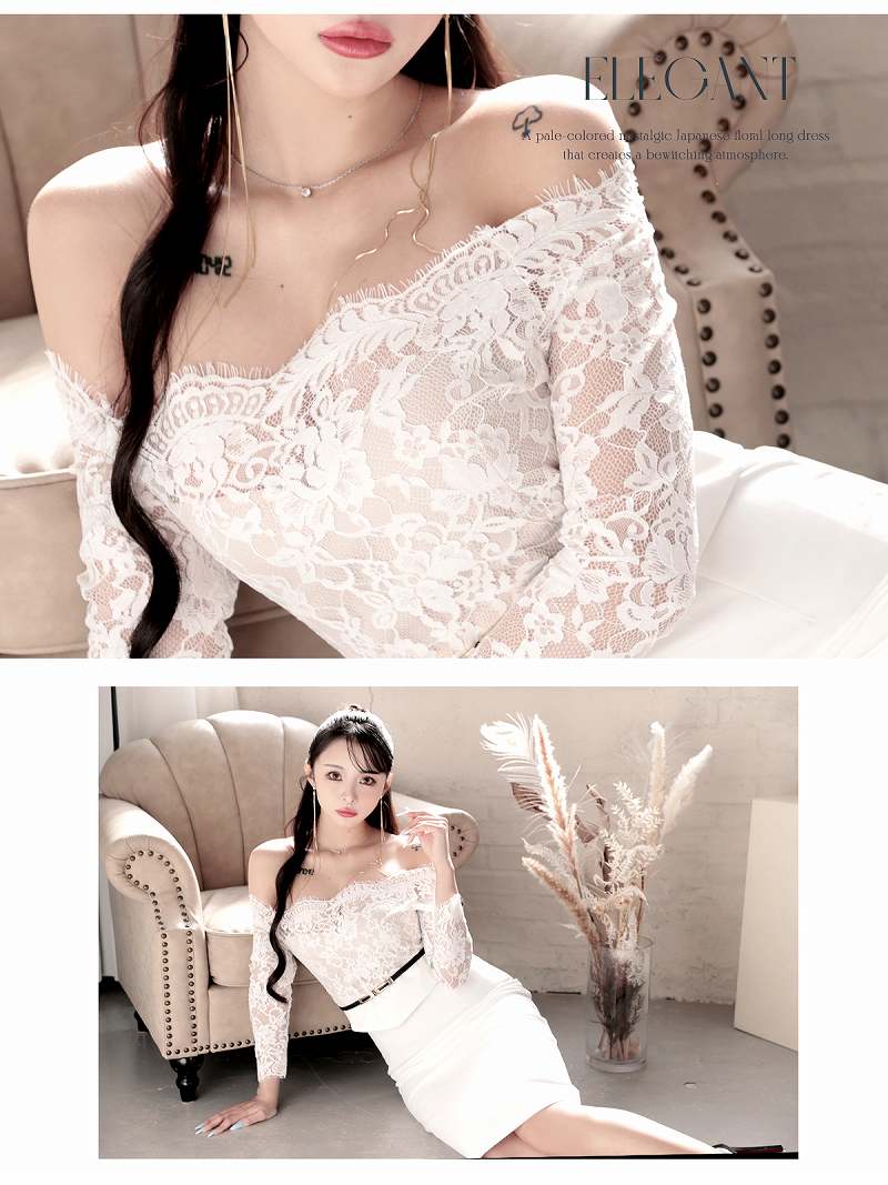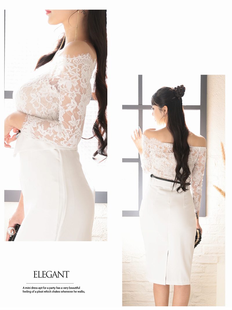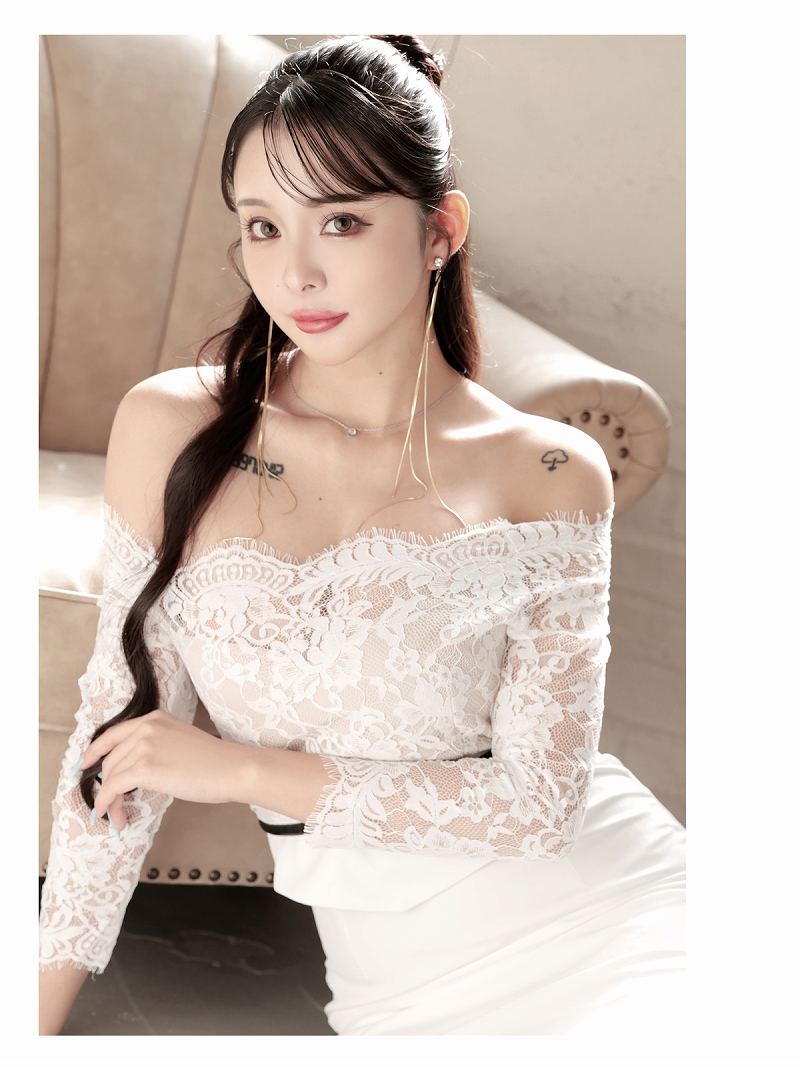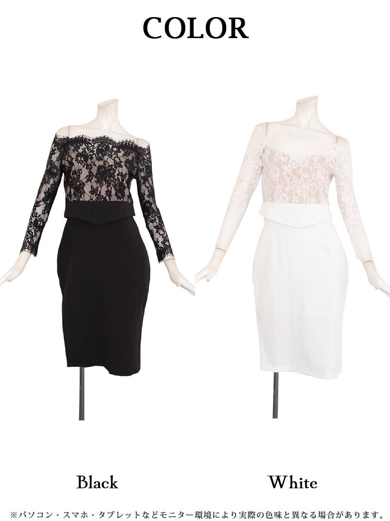 ワンピース キャバドレス 韓国風 韓国style オフショルダー ペプラム風 七分袖 DaysPiece(S/M/L/XL(2L))(ブラック/ホワイト) [510211]