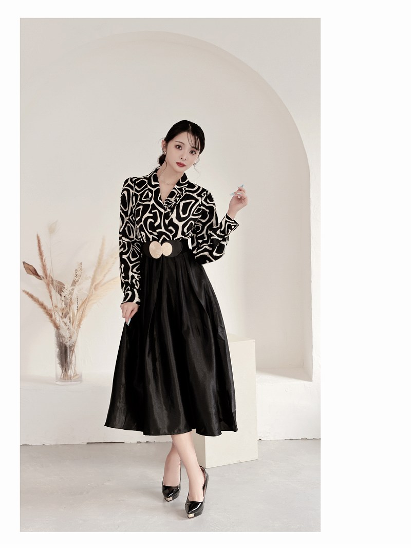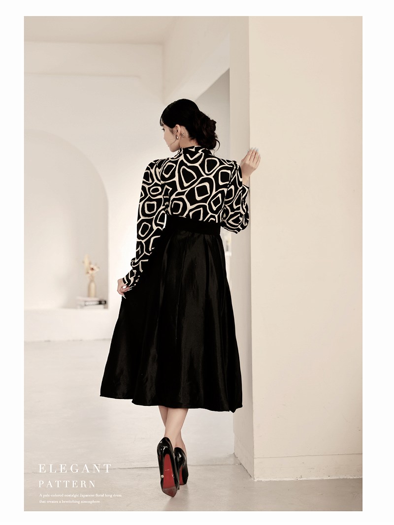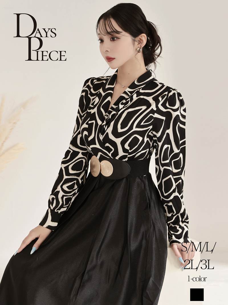 ワンピース キャバドレス フレアワンピース ラメ加工 モノトーン 長袖 ブラウジング DaysPiece(S/M/L/XL(2L)/XXL(3L))(ブラック) [510142]