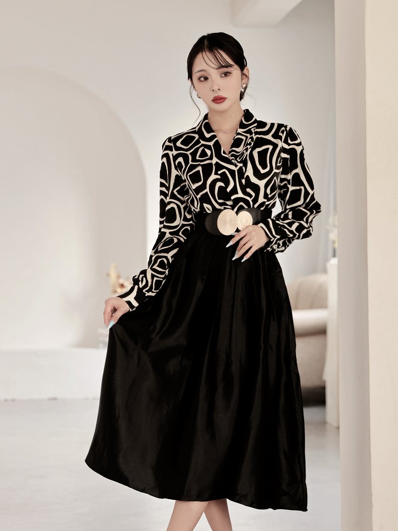 ☆付属のサッシュベルト付きデザインは、腰の位置を高く見せてくれるので足長見えも確実です。
