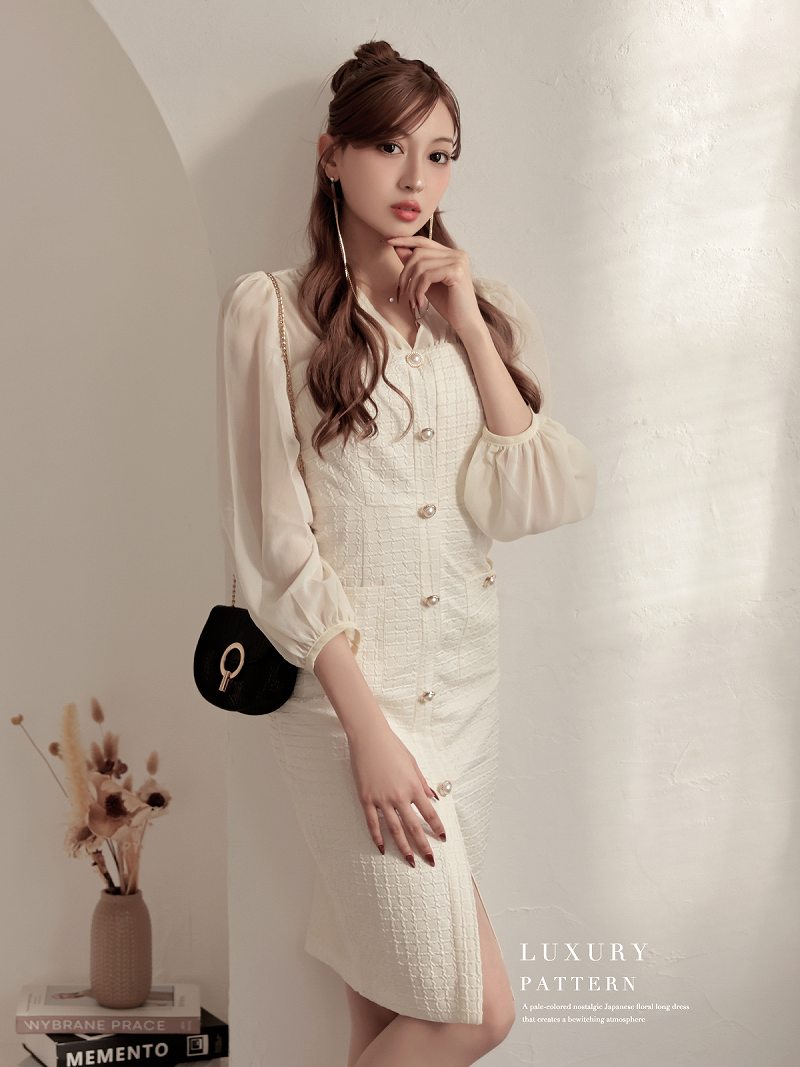 ☆透け感のある長袖デザインが、上品でフォーマルな印象を与えてくれる一着です。