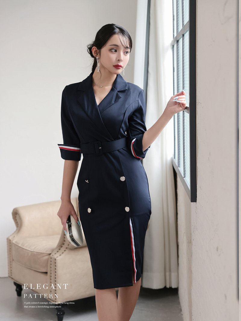 ワンピース キャバドレス 韓国風 膝丈ワンピース ネイビー 上質 DaysPiece(S/M/L/XL(2L))(ネイビー) [510139]